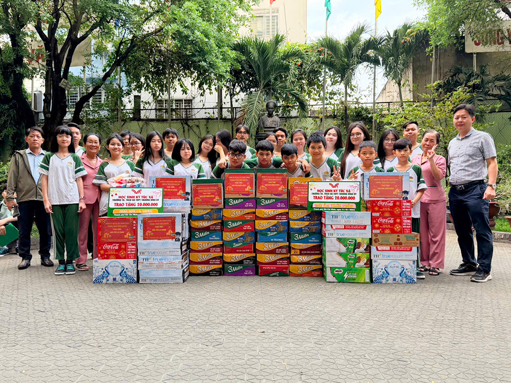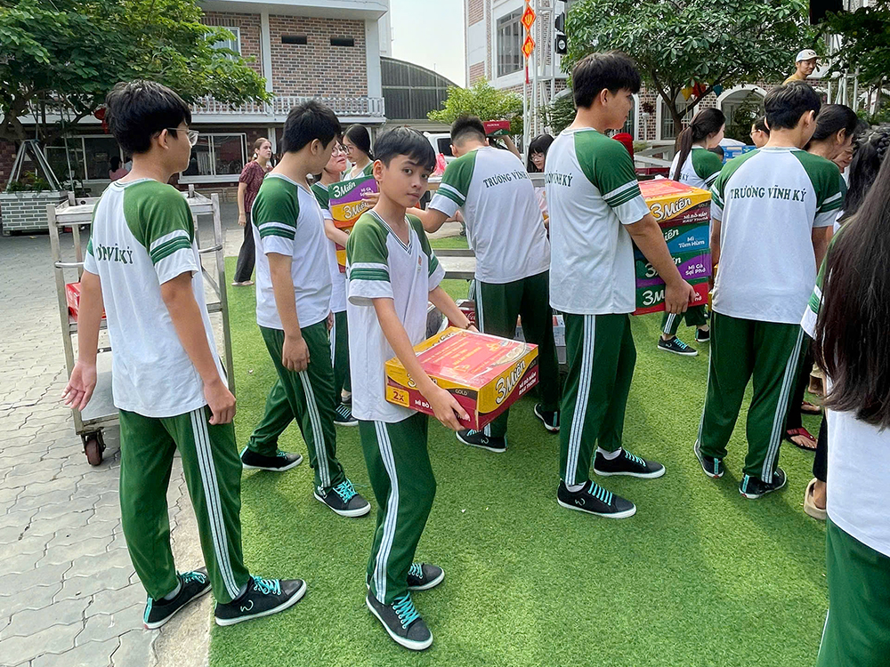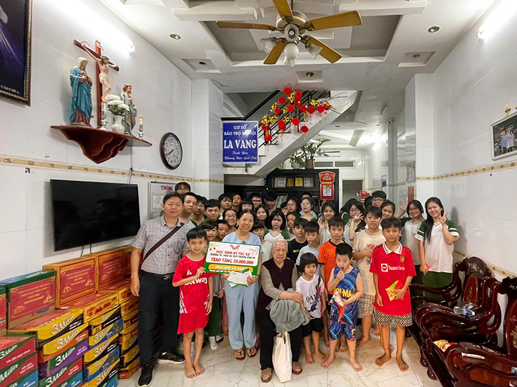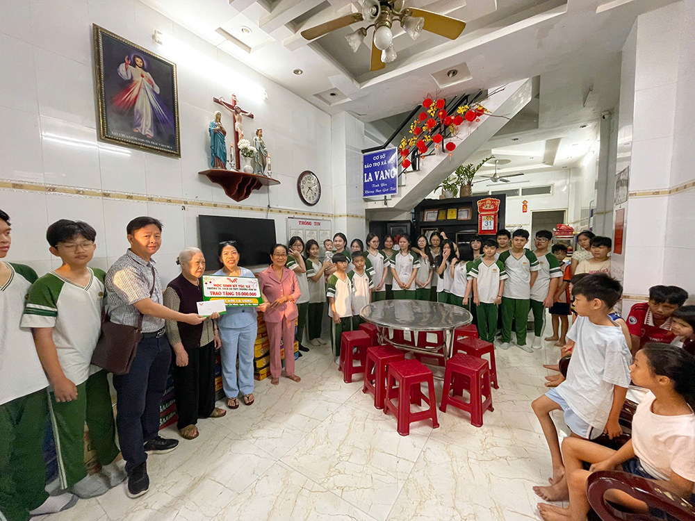Bằng tấm lòng nhân ái và đồng cảm, sẻ chia, thầy cô trong Hội đồng Trường, quý cha mẹ học sinh và các em học sinh Ký Túc xá đã trao tặng 40.000.000 đồng cho Mái ấm La Vang, Mái ấm Thiên Phúc cùng với 70 thùng mì, 19 thùng sữa, 2 thùng nước suối, 4 thùng nước ngọt…