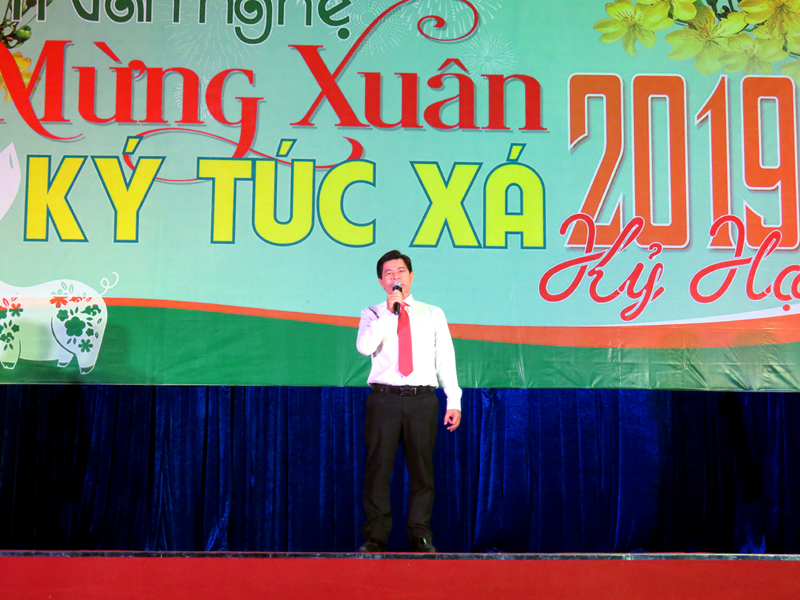 Thầy Hiệu trưởng nhà trường phát biểu chúc tết học sinh Ký túc xá