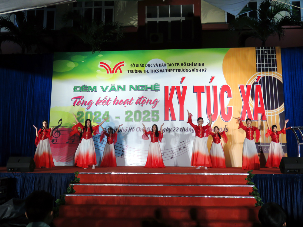 Nhằm giúp các em học sinh Ký túc xá có được một sân chơi bổ ích, ý nghĩa sau kỳ thi Học kỳ 2 đồng thời khen thưởng những học sinh có thành tích hoạt động phong trào, học tập, rèn luyện tốt v.v… tạo hiệu ứng lành mạnh, tích cực, động viên tinh thần thi đua, phấn đấu của các em ở năm học tới cũng như tăng cường hoạt động văn – thể - mỹ trong học đường, giáo dục học sinh giá trị thẩm mỹ đúng đắn, gắn kết các hoạt động ngoại khóa với nội dung "Xây dựng trường học thân thiện - học sinh tích cực", vào lúc 18g30 thứ năm, ngày 22/05/2025, nhà trường đã tổ chức “Đêm Văn nghệ Tổng kết hoạt động Ký túc xá năm học 2024 - 2025” tại cơ sở Trịnh Đình Trọng.