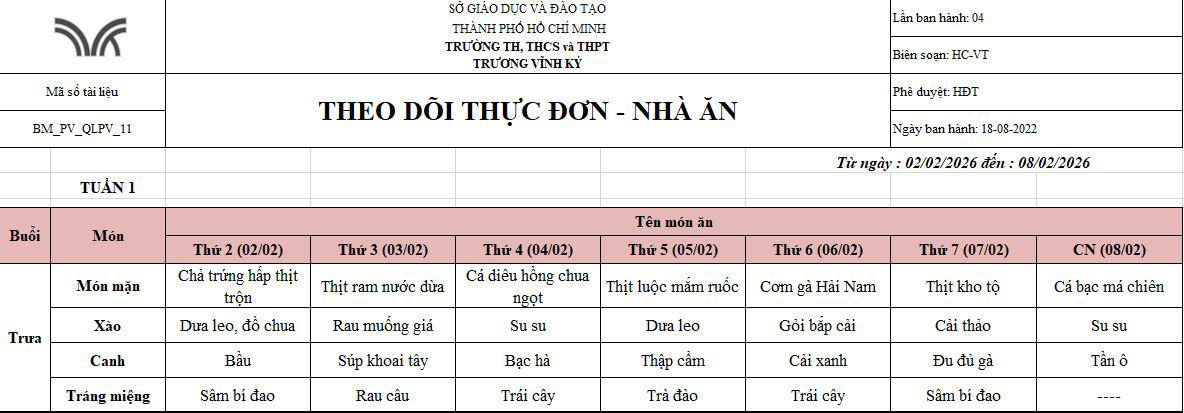 KHẨU PHẦN ĂN BÁN TRÚ 02/2026