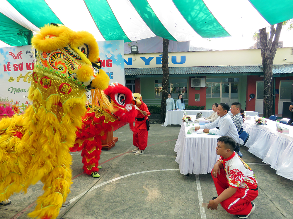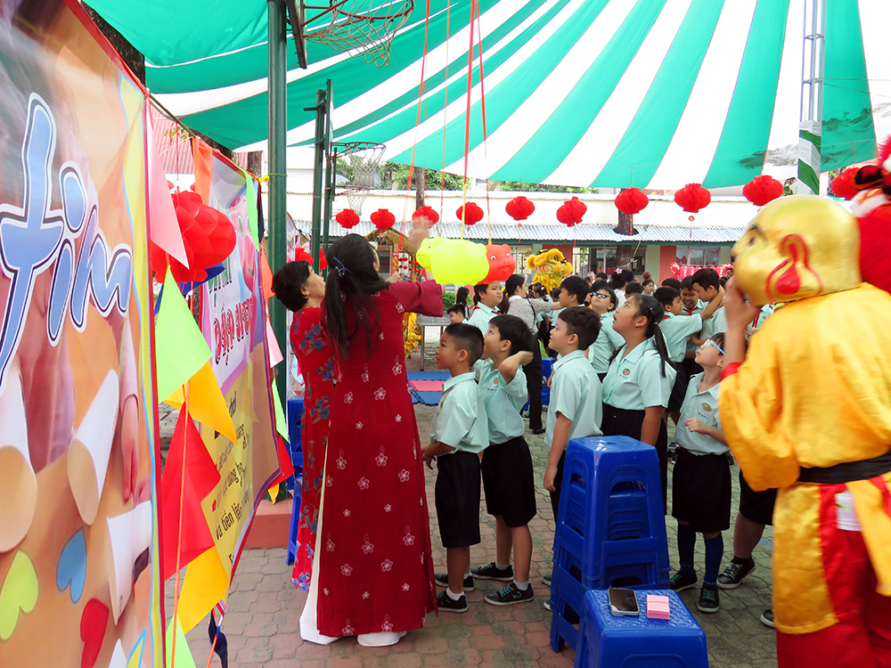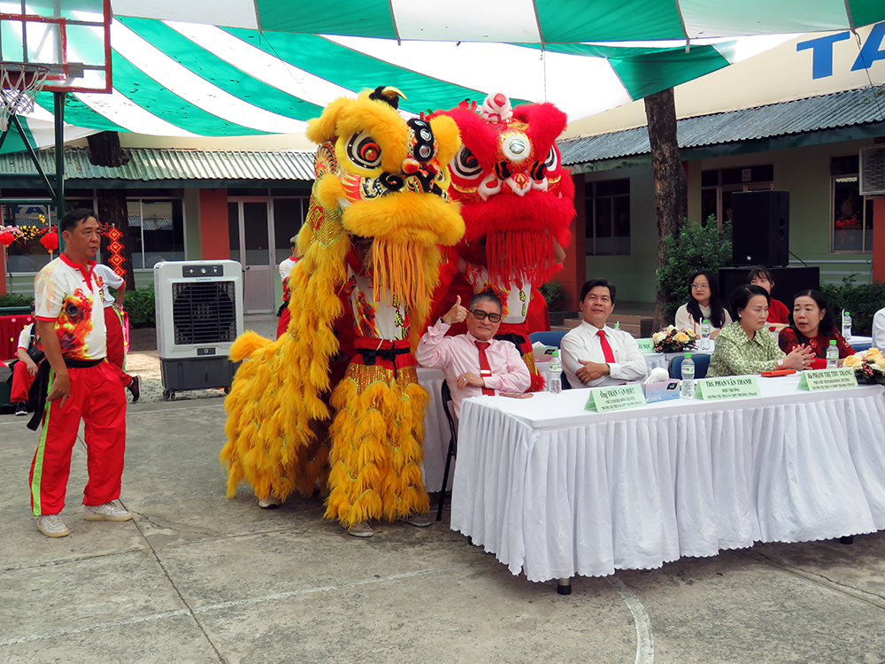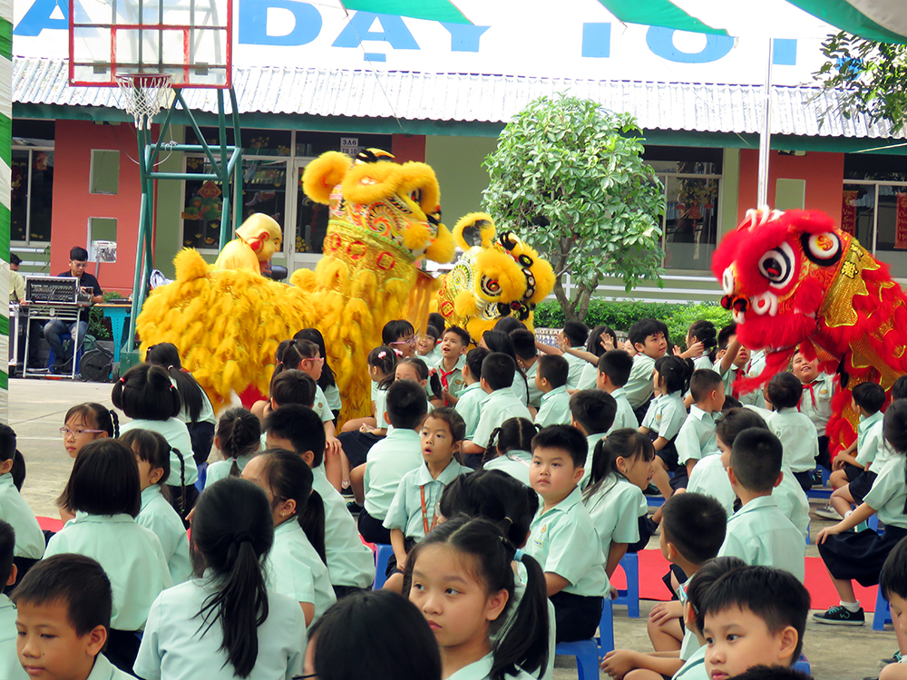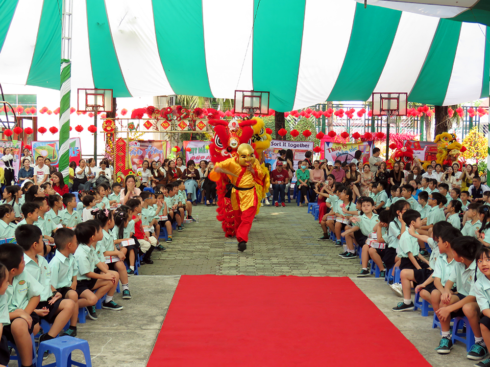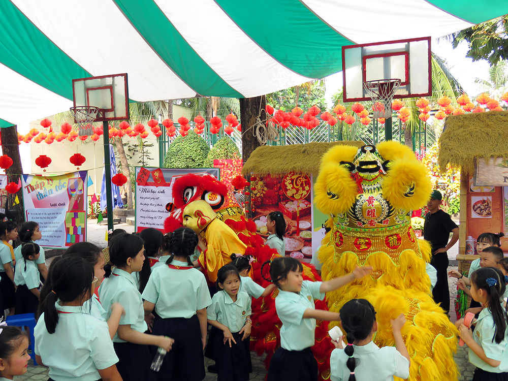 Sự xuất hiện của những chú Lân - Sư - Rồng đã tạo nên ngạc nhiên, vui thích và phấn khởi cho các bạn học sinh Tiểu học. Các bạn đón chào Hội Xuân qua các gian hàng ẩm thực ba miền và các trò chơi dân gian thật thú vị. Chúc các em học sinh có ngày Hội thật vui, mang về thật nhiều lộc Xuân…
