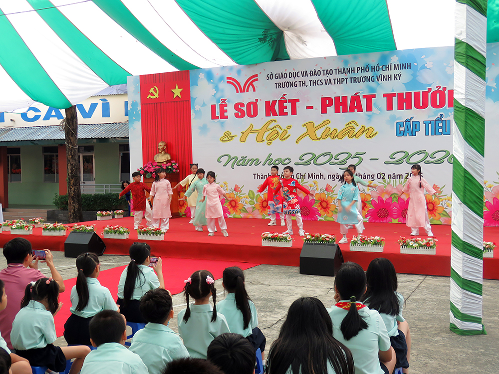 Hòa chung không khí tưng bừng đón Xuân, thực hiện Công văn số 830/SGDDT-HSSV ngày 27 tháng 01 năm 2026 của Sở Giáo dục và Đào tạo Thành phố Hồ Chí Minh về việc truyền thông Thông điệp học sinh Thành phố và tạo điều kiện cho học sinh tham dự Hội trại truyền thống, trường TH, THCS và THPT Trương Vĩnh Ký trang trọng tổ chức Lễ Sơ kết - Phát thưởng và Hội Xuân Bính Ngọ - Học kì I, năm học 2025 – 2026 vào lúc 7 giờ 30 ngày thứ Sáu, 06 tháng 02 năm 2026 tại cơ sở Trịnh Đình Trọng, Thành phố Hồ Chí Minh.