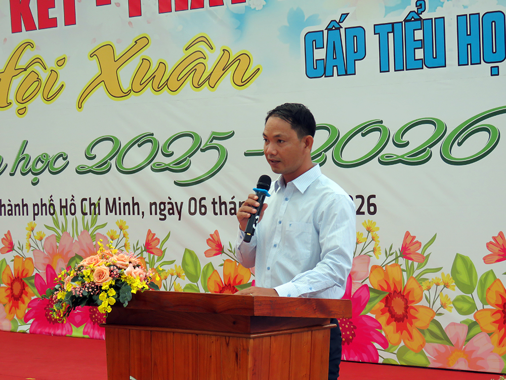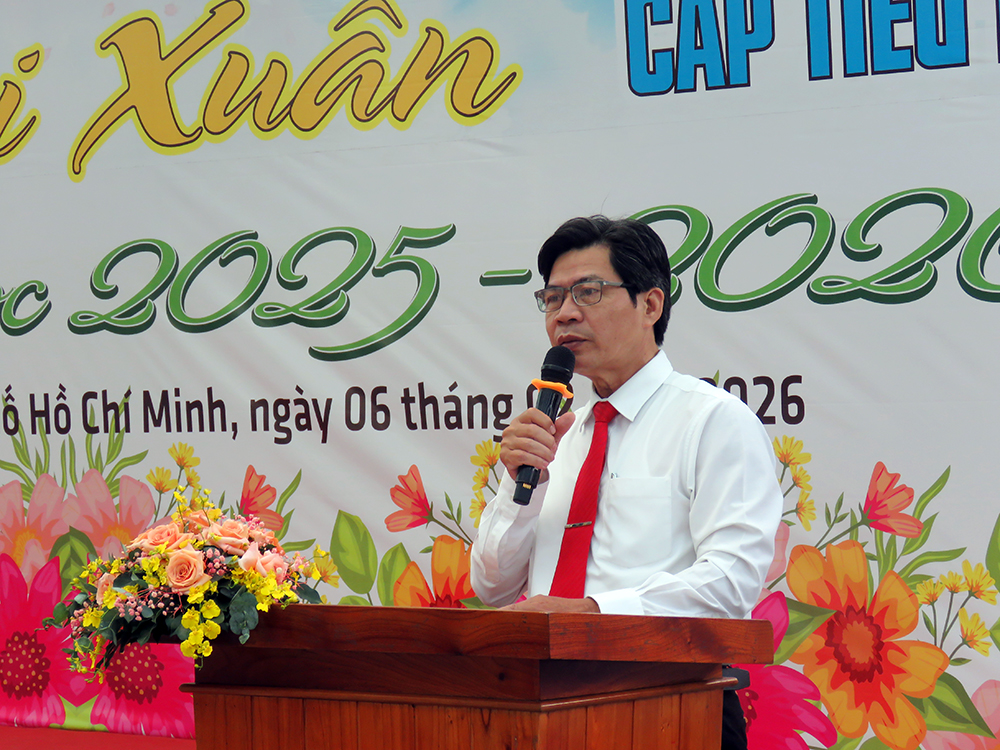 Thầy Hiệu trưởng Phan Văn Thanh chúc mừng các em đạt thành tích và chúc mừng năm mới 2026
