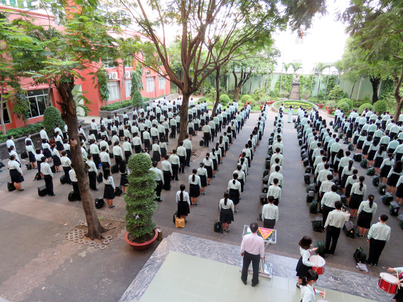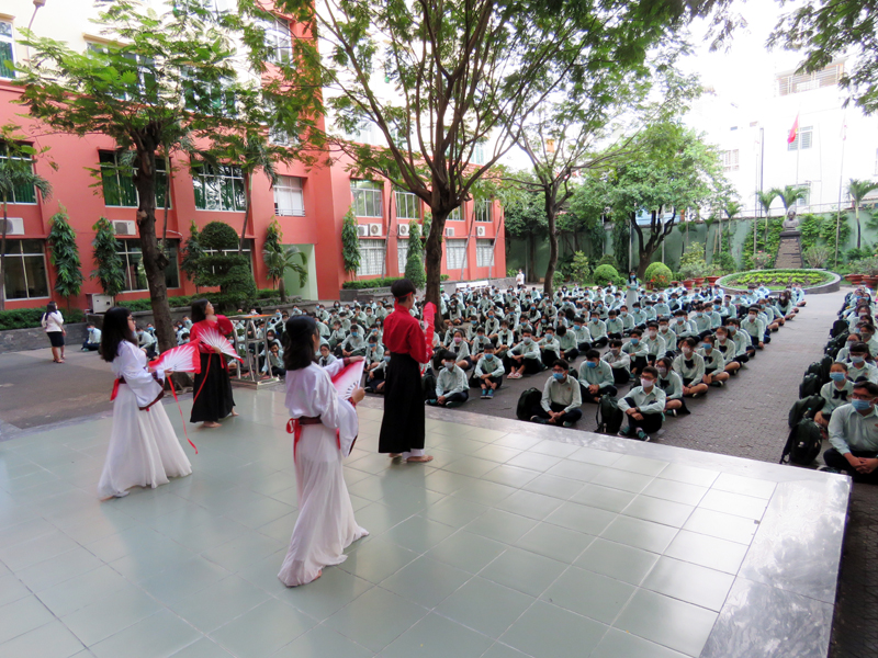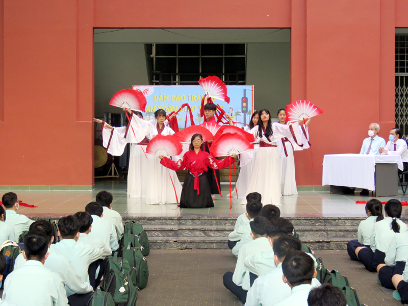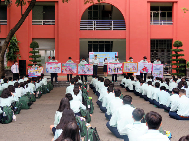 Căn cứ vào Kế hoạch năm học 2020 - 2021, kế hoạch tổ chức các hoạt động giáo dục Ngoài giờ lên lớp (NGLL) nhằm phổ biến, chia sẻ, hướng dẫn những vấn đề mang tính thông tin thời sự, cấp thiết và giáo dục về tư tưởng, đạo đức, kỹ năng sống cho các em học sinh đồng thời giúp các em học sinh có ý thức chấp hành luật giao thông nghiêm túc, hưởng ứng tháng “An toàn giao thông quốc gia”, bảo vệ an toàn cho mình và người sử dụng phương tiện giao thông, sáng thứ hai, ngày 28/09/2020, trường TH, THCS và THPT Trương Vĩnh Ký tổ chức hoạt động ngoài giờ lên lớp với chủ đề “An toàn giao thông”.
