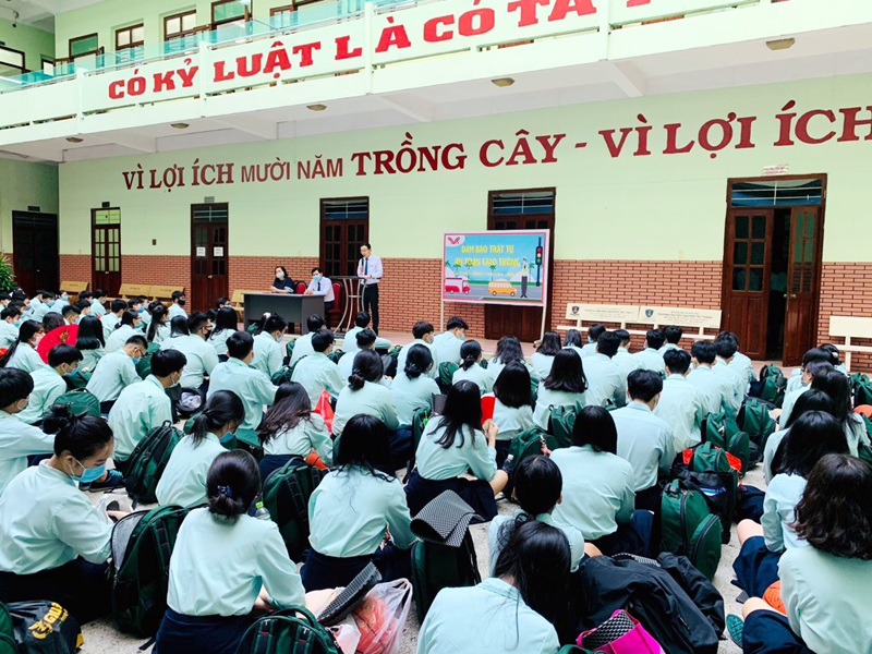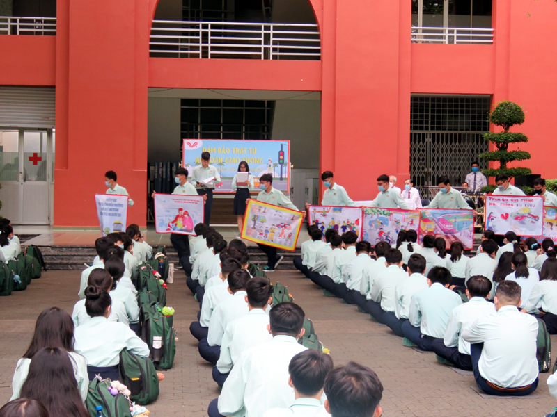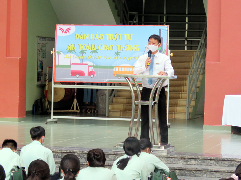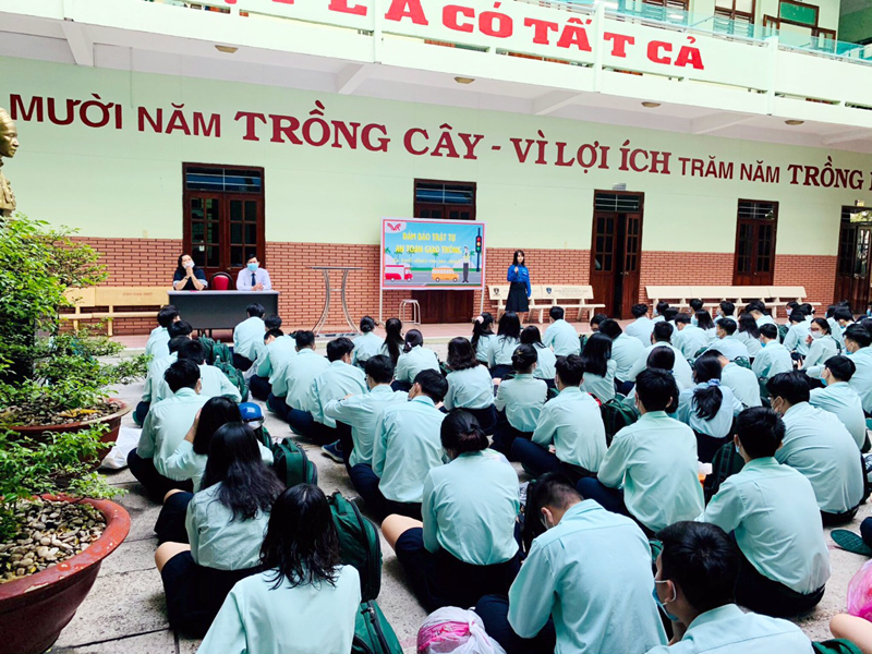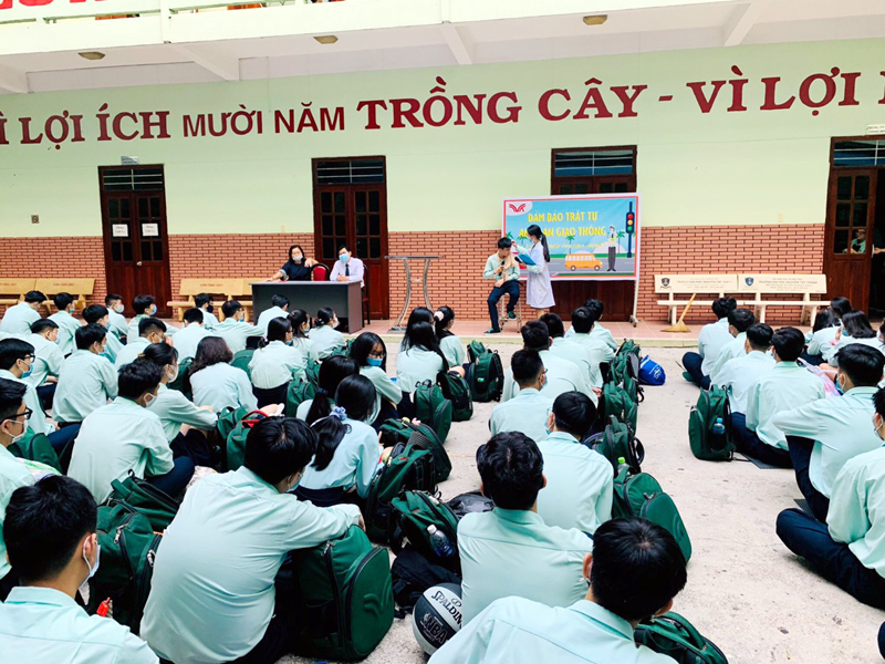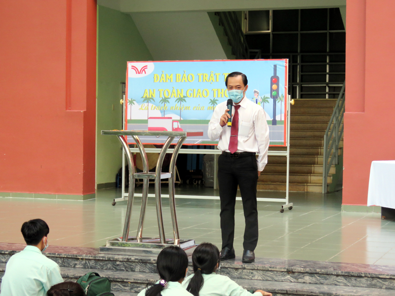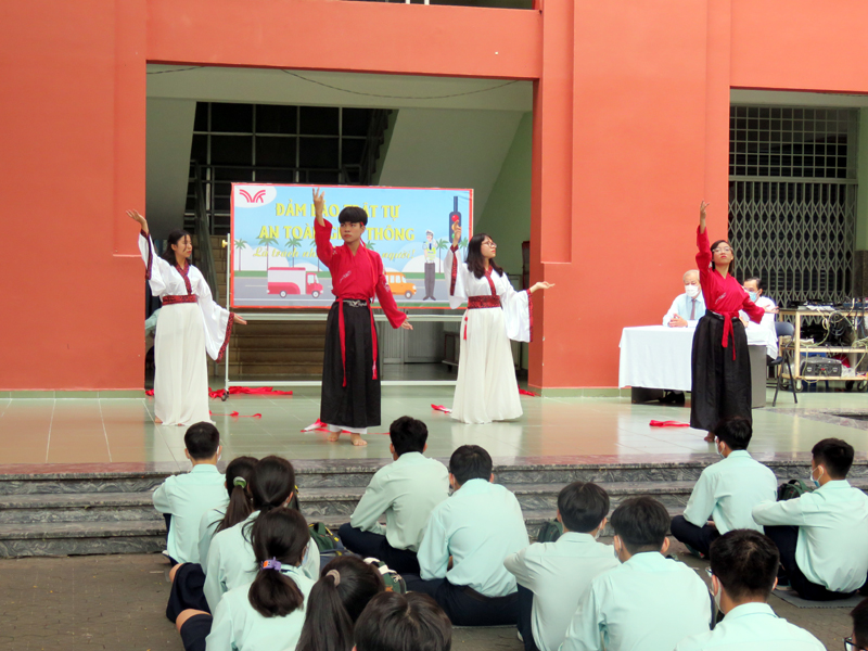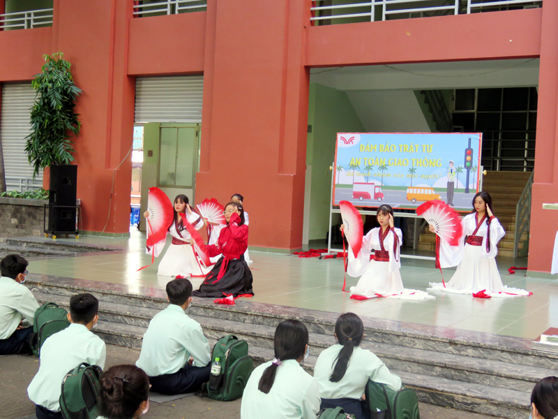 Trong buổi ngoại khóa, Thầy Phan Văn Thanh – Hiệu trưởng nhà trường đã chia sẻ những sự cố liên quan đến việc không chấp hành quy định an toàn giao thông và yêu cầu các em cần nghiêm túc tuân thủ Luật Giao thông để đảm bảo an toàn cho bản thân và những người cùng tham gia giao thông. Hoạt động thêm phần sối nổi với tiểu phẩm của học sinh lớp 12A1 và 12A3 , cơ sở Bành Văn trân và lớp 12A2 - 12A4 và 12A24, cơ sở Trịnh Đình Trọng, các tiết mục văn nghệ, thuyết trình về Luật An toàn giao thông….