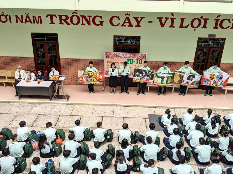 Sáng nay, thứ hai ngày 19/10/2020, Chương trình ngoài giờ lên lớp với chủ đề " CHÀO MỪNG NGÀY PHỤ NỮ VIỆT NAM 20/10" được thực hiện do các em học sinh khối lớp tại 2 cơ sở.