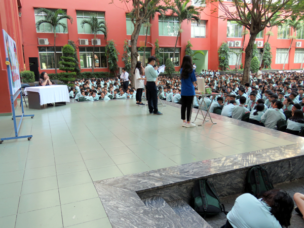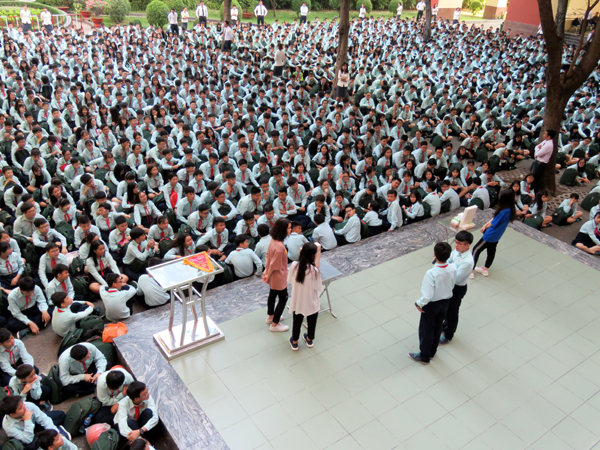 Buổi sinh hoạt là các tiết mục văn nghệ và tiết mục đố vui có thưởng của học sinh khối 11A20