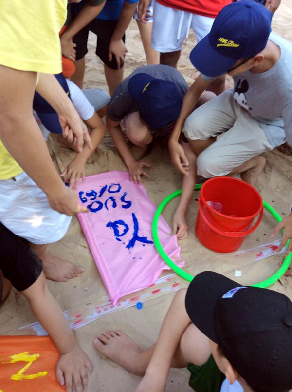 Các em tham gia TEAM BUILDING trên biền