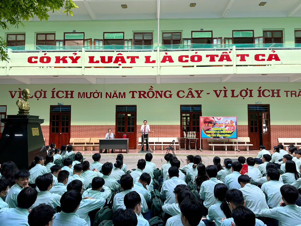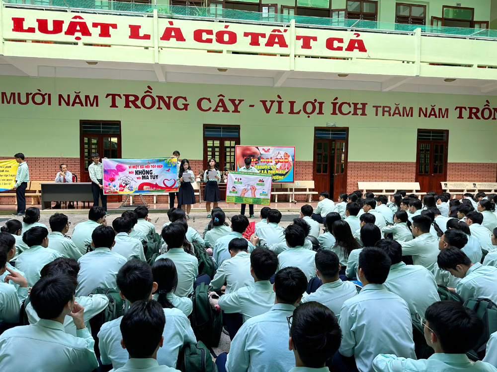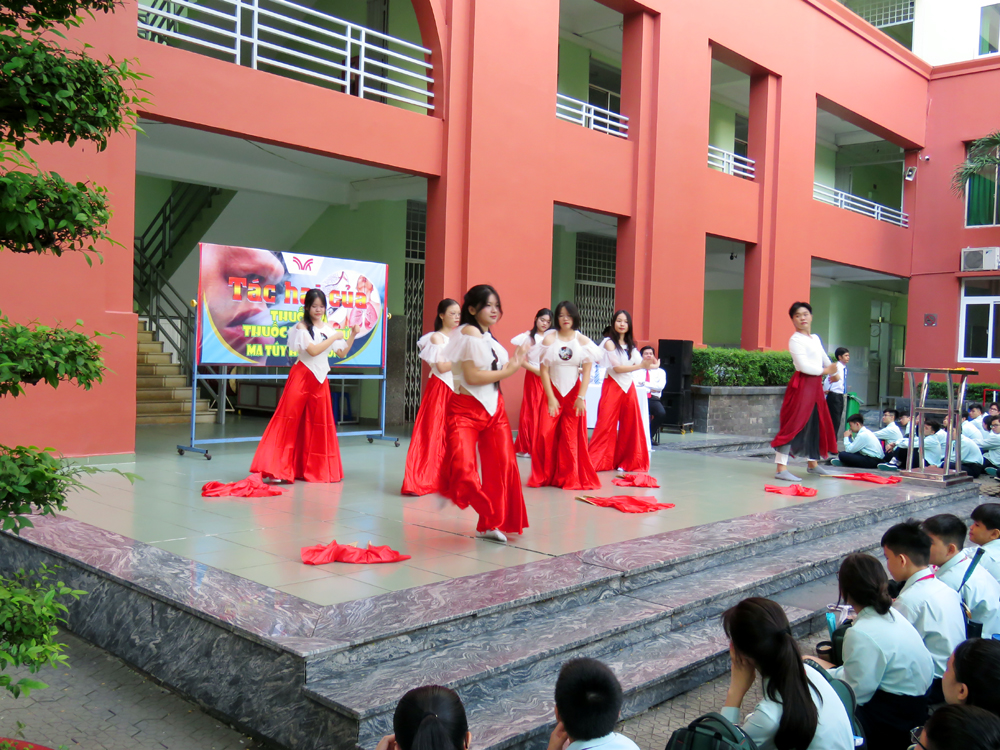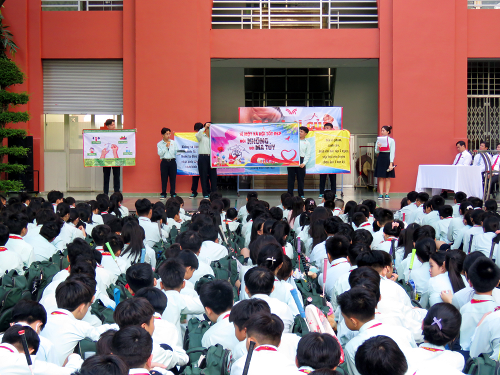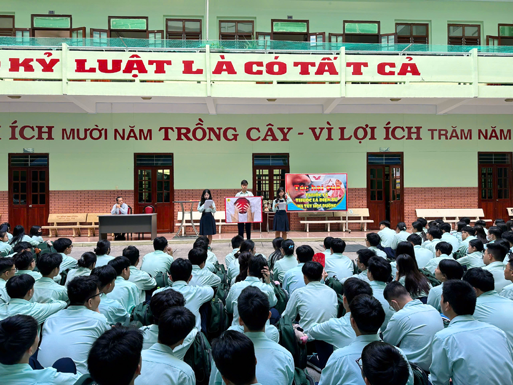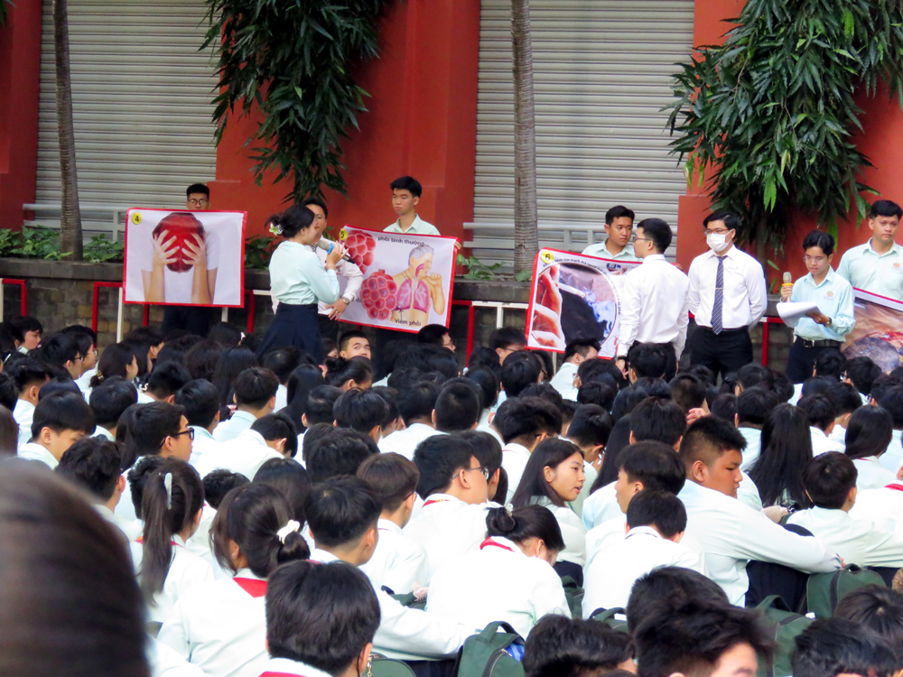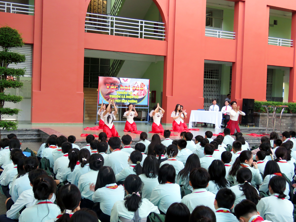 Vào lúc 7g00 ngày thứ hai 04/11/2024, hoạt động Ngoài giờ lên lớp với chủ đề “TÁC HẠI CỦA THUỐC LÁ – THUỐC LÁ ĐIỆN TỬ - MA TÚY HỌC ĐƯỜNG" do các em học sinh lớp 12 tại 2 cơ sở của nhà trường thực hiện.