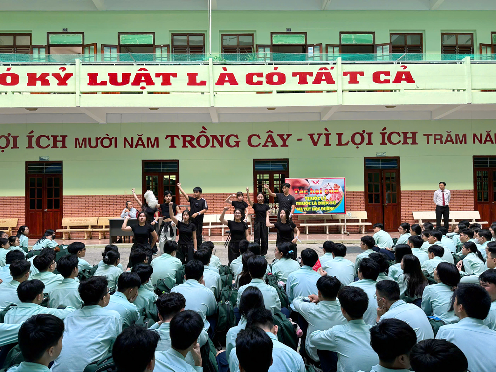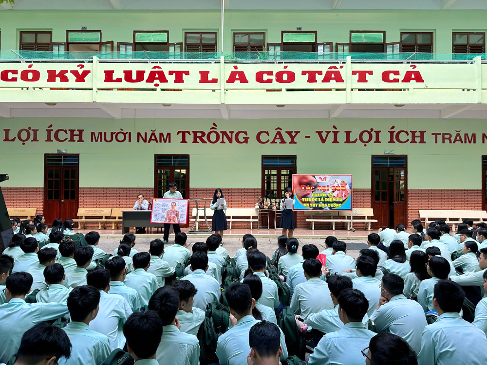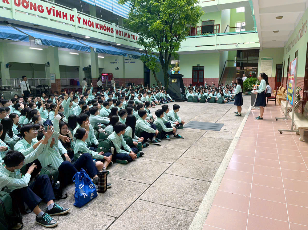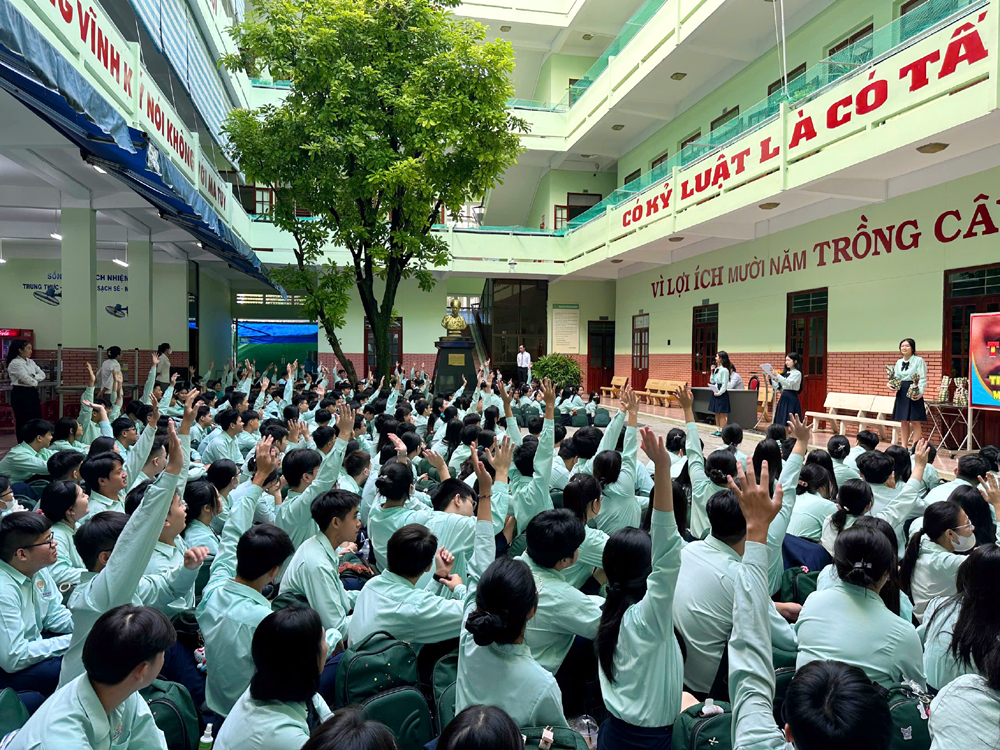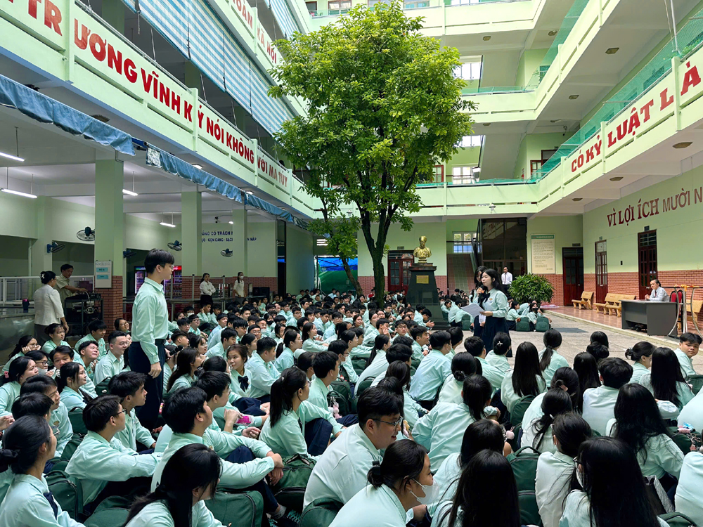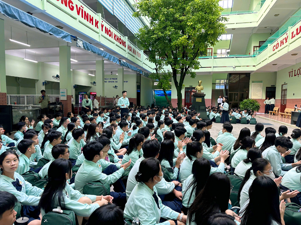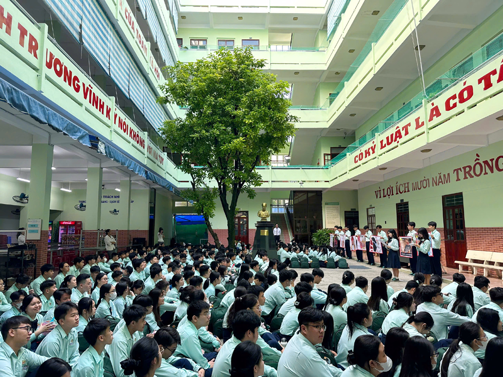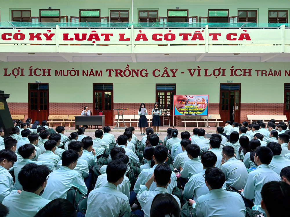 Vào lúc 7g00 ngày thứ hai 04/11/2024, hoạt động Ngoài giờ lên lớp với chủ đề “TÁC HẠI CỦA THUỐC LÁ – THUỐC LÁ ĐIỆN TỬ - MA TÚY HỌC ĐƯỜNG" do các em học sinh lớp 12 tại 2 cơ sở của nhà trường thực hiện.