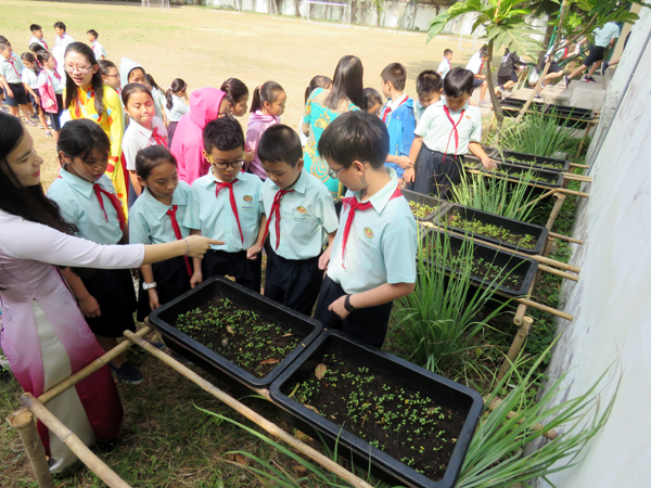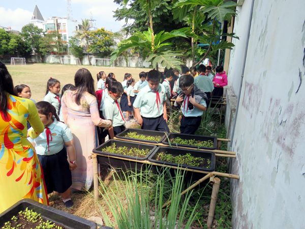 Các cô hướng dẫn cho các em về thực tế quy trình trồng rau sạch