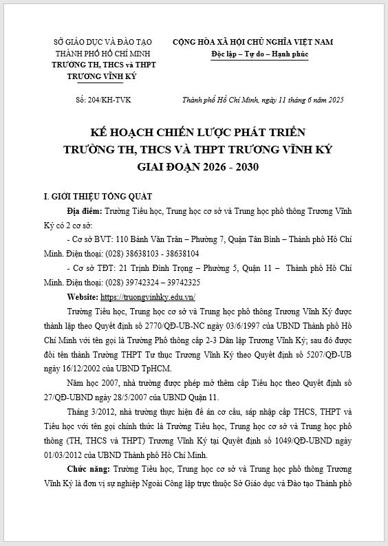 TRƯỜNG TH, THCS VÀ THPT TRƯƠNG VĨNH KÝ