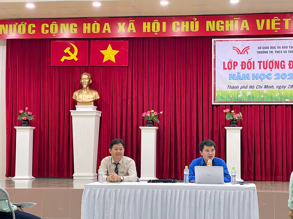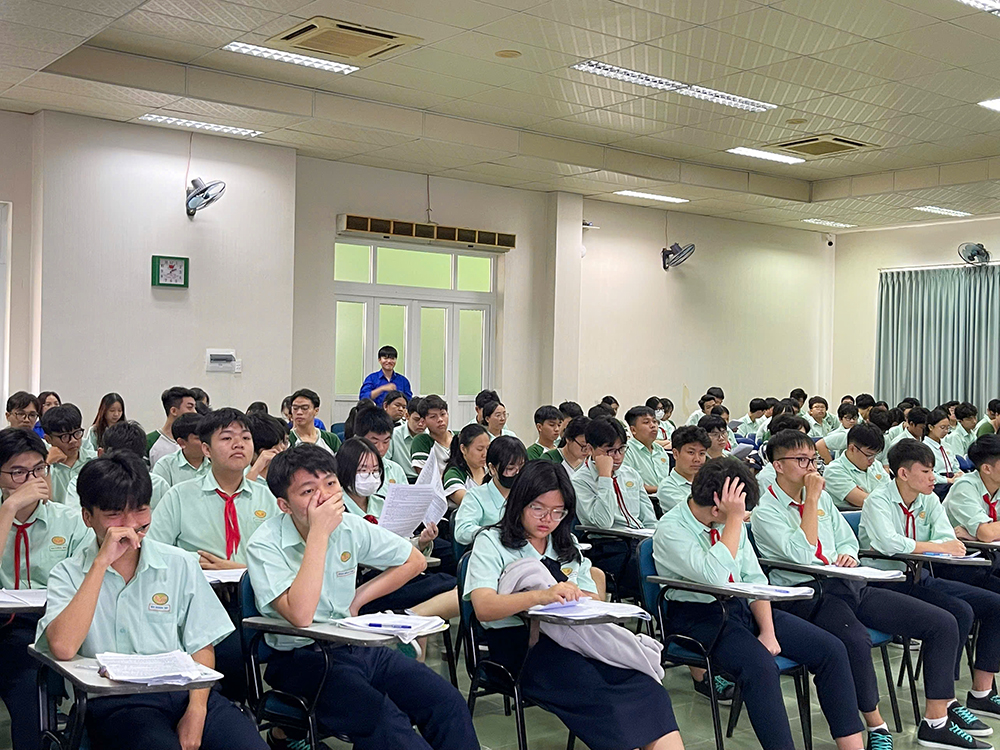 Tham dự buổi tuyên truyền có thầy Nguyễn Xuân Giáp – Trợ lý Thanh niên Trường Trương Vĩnh Ký.