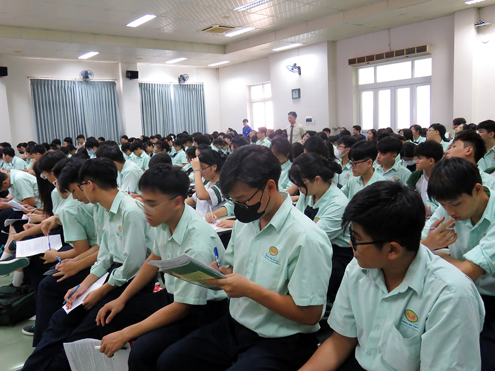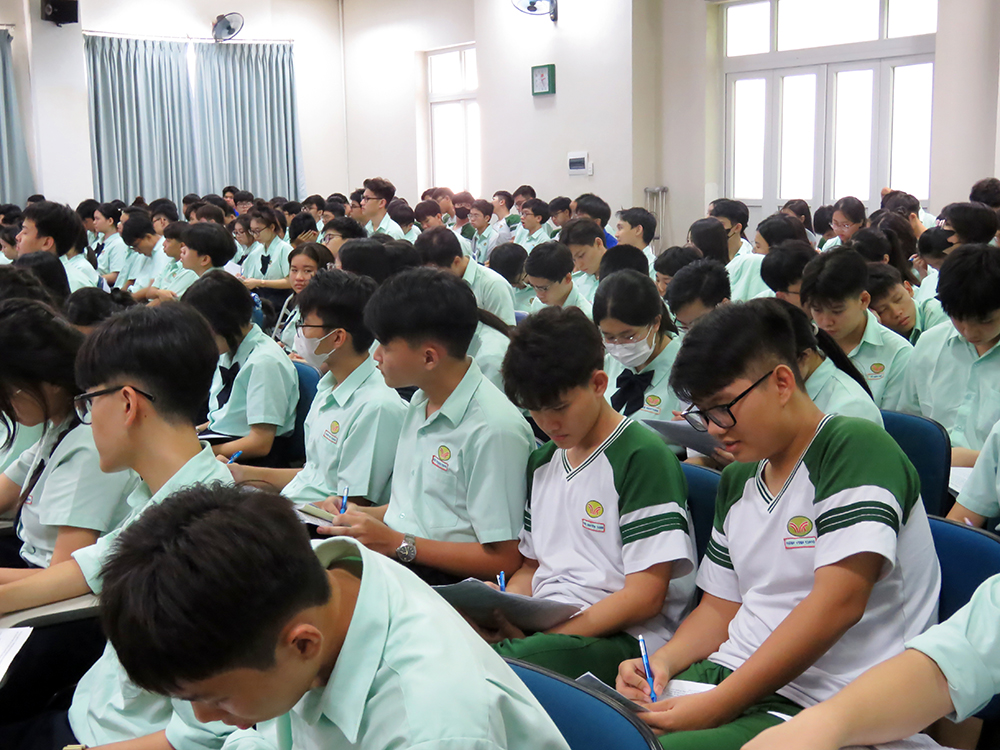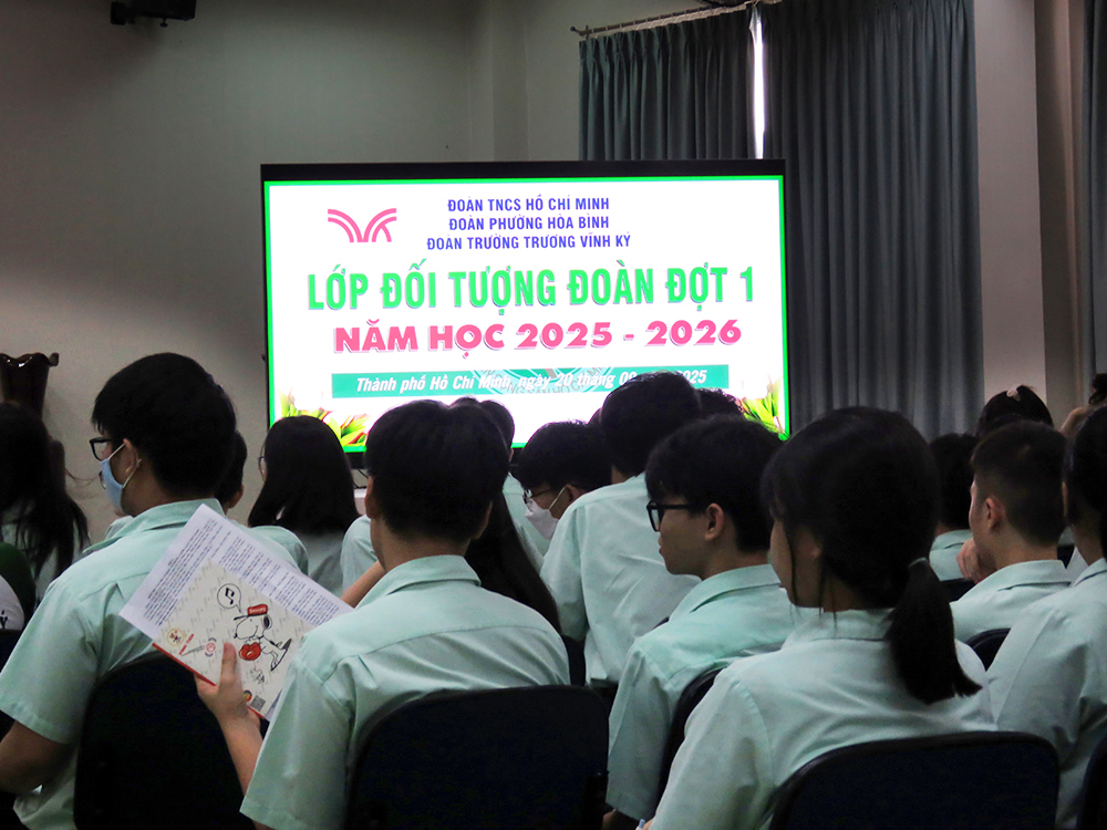 Vào lúc 13g30, thứ bảy 20/09/2025, tại cơ sở Trịnh Đình Trọng, BCH Đoàn Trường Trương Vĩnh Ký mở lớp “Tuyên truyền điều lệ Đoàn và Kết nạp đoàn viên mới đợt 1 năm học 2025 - 2026” cho 266 học sinh khối 10,11,12.