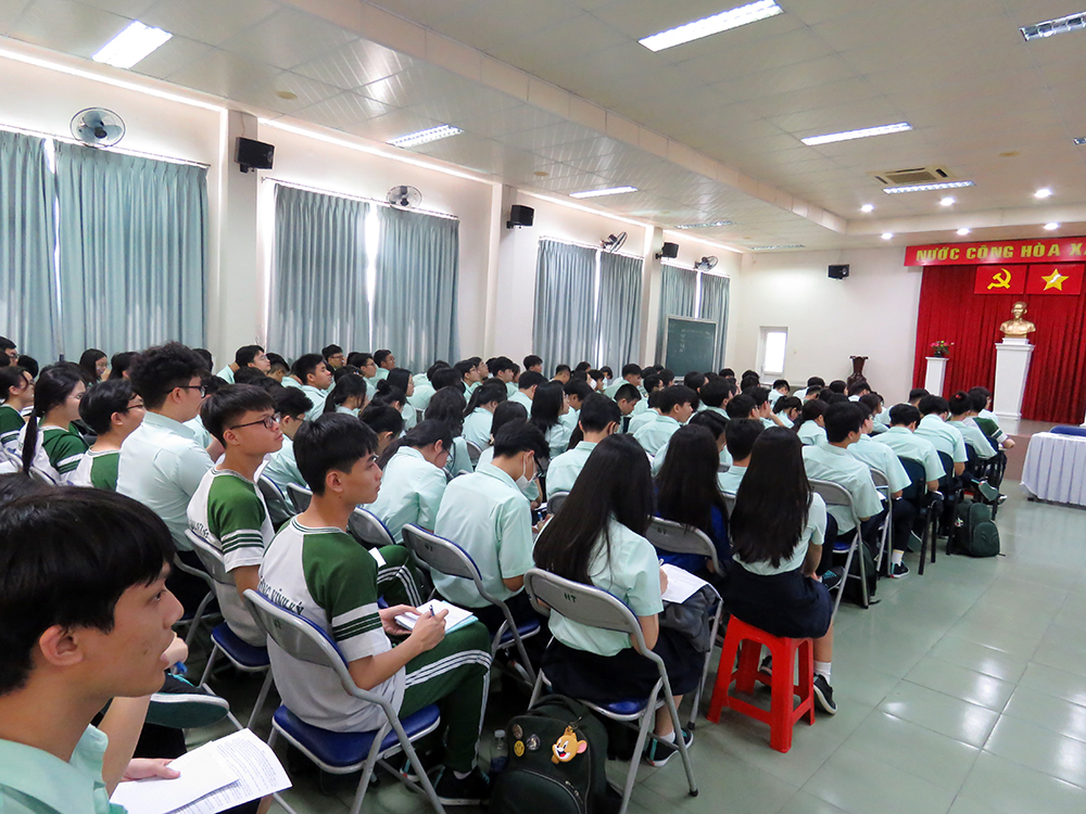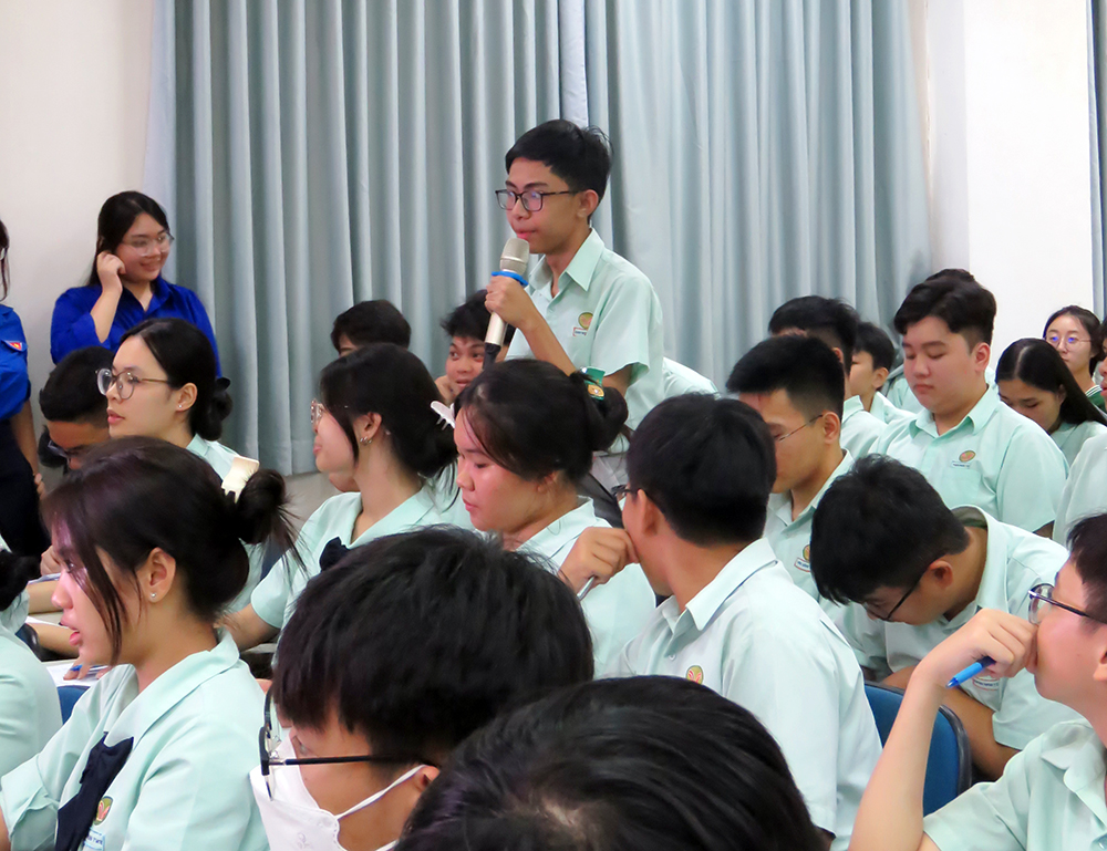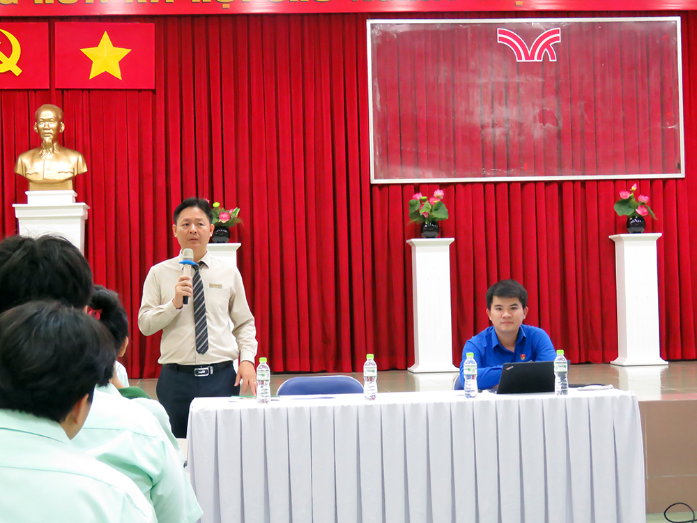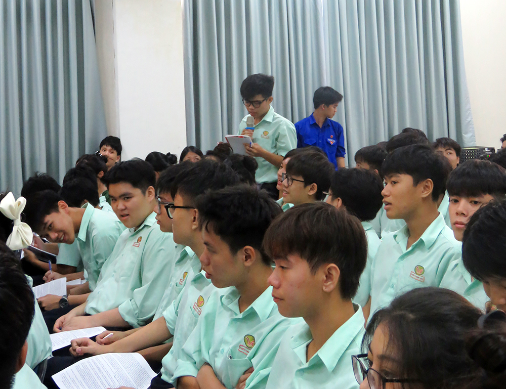 Tham dự buổi tuyên truyền có cán bộ Đoàn phường Hòa Binh, thầy Nguyễn Xuân Giáp – Trợ lý Thanh niên Trường Trương Vĩnh Ký.