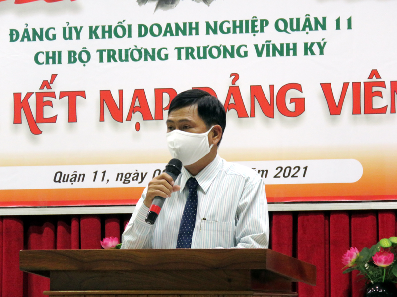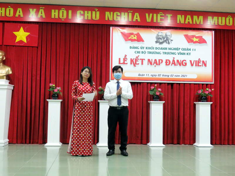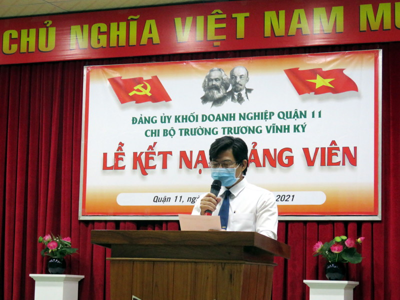Tham dự buổi Lễ có ông Huỳnh Kim Tuấn – Bí thư Đảng ủy khối doanh nghiệp quận; ông Nguyễn Thanh Long – Phó bí thư Đảng ủy khối doanh nghiệp quận; Ban Lãnh đạo nhà trường và tất cả đảng viên trong Chi bộ.