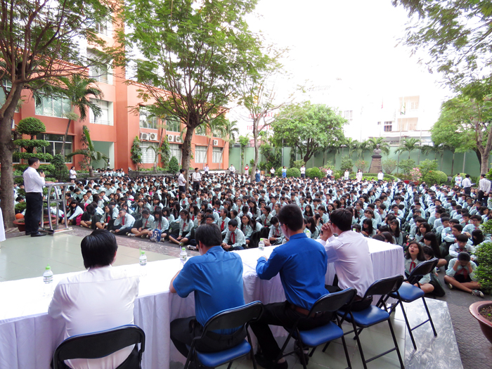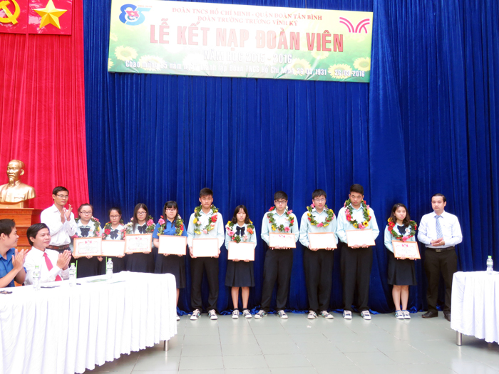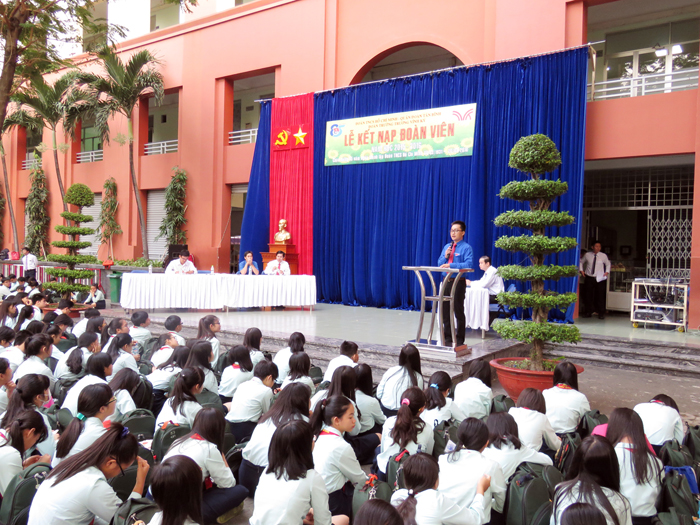 - Tham dự buổi Lễ có các Đại biểu là Thành Đoàn TP. HCM, Quận ủy Tân Bình, Quận Đoàn Tân Bình và một số trường bạn. về phía nhà trường có Ban lãnh đạo, GVCN, học sinh khối 6 đến khối 12 (Trong đó có 30 thanh niên ưu tú đại diện được kết nạp đoàn).