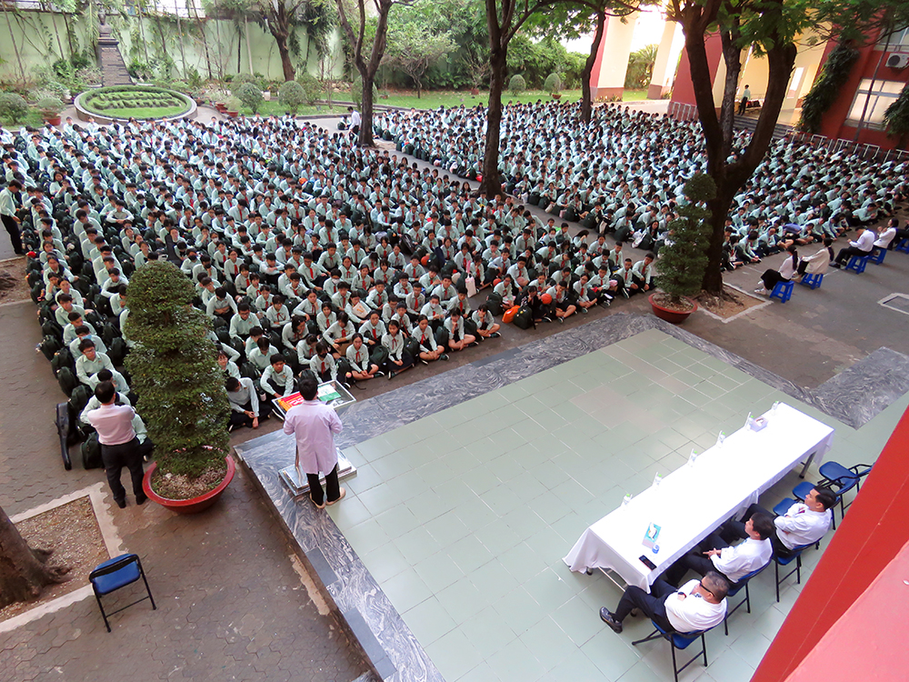 Tham dự buổi tuyên truyền có thầy cô trong Ban Lãnh đạo nhà trường, các thầy cô là giáo viên chủ nhiệm, giáo viên bộ môn và toàn thể các em học sinh.