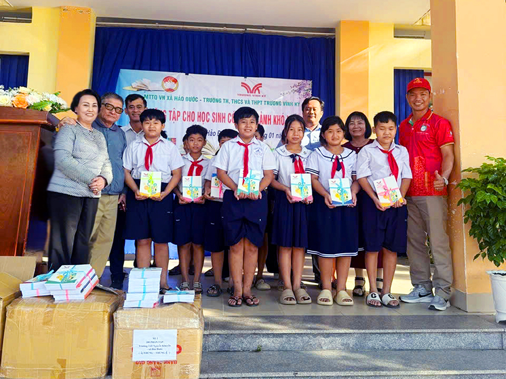 Tấm lòng của cán bộ, giáo viên, nhân viên, học sinh và quý cha mẹ học sinh trường Trương Vĩnh Ký đã thể hiện qua 270 phần quà tập gửi tặng học sinh khó khăn ở xã Châu Thành và trường Tiểu học Nguyễn Khuyến, xã Hảo Đước, 230 phần tập tặng học sinh hiếu học ở xã Phước Vinh. Bên cạnh đó, nhà trường cũng đã cùng với đơn vị phối hợp chuẩn bị 40 phần quà nhu yếu phẩm gửi tặng những người có hoàn cảnh đặc biệt tại Giáo xứ Vinh Sơn, 600 phần quà dành cho những bà con hộ nghèo ở xã Châu Thành và xã Phước Vinh.