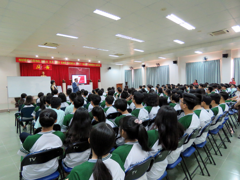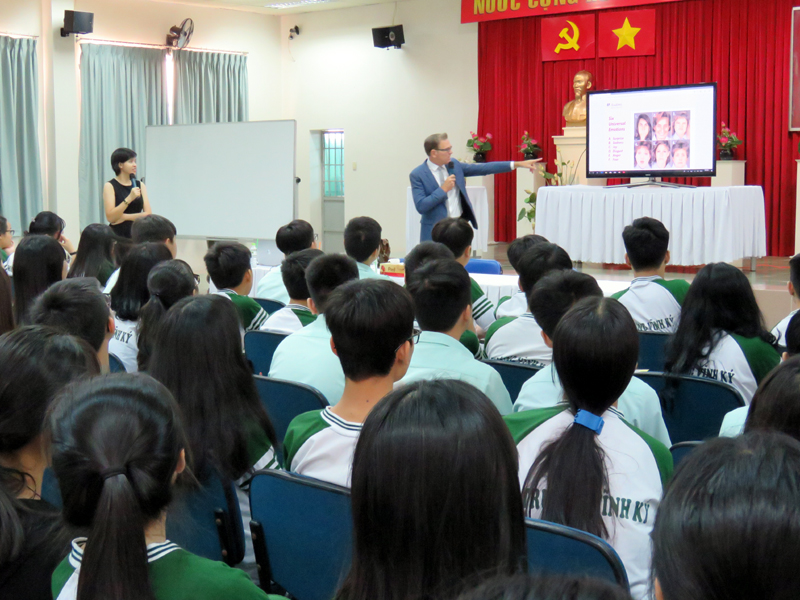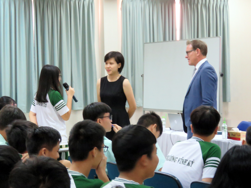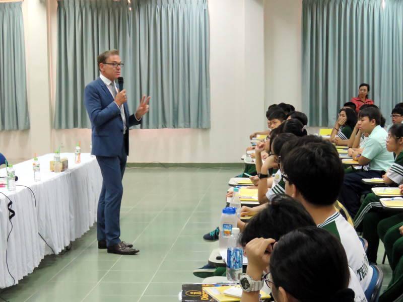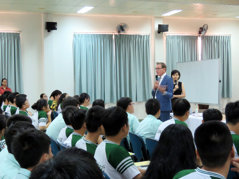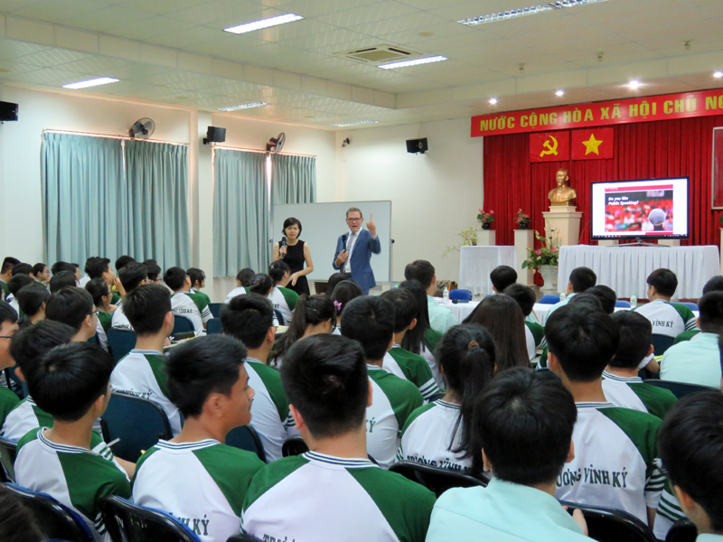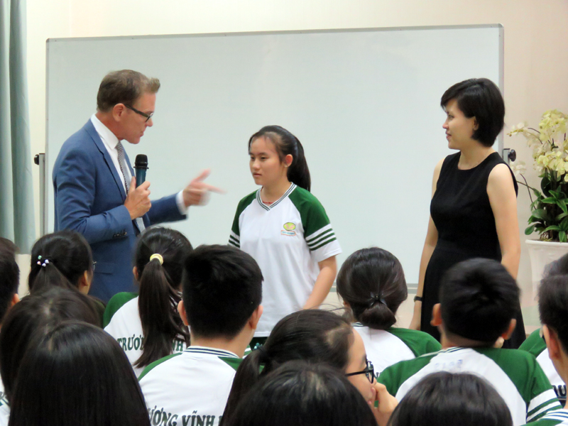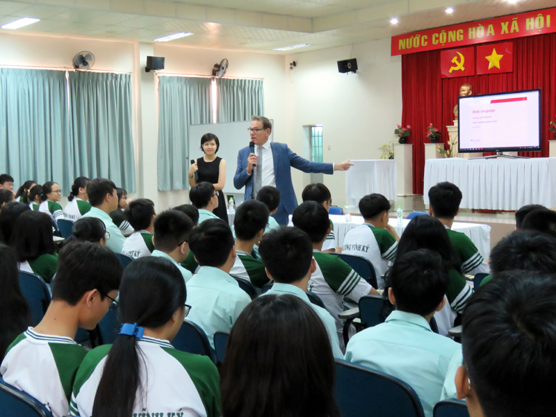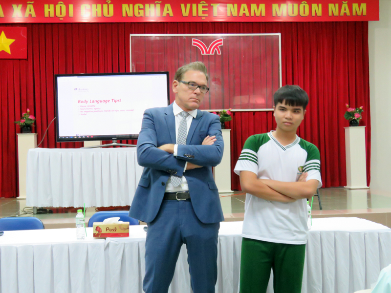 Ông JOHN DOHNMANN - hướng dẫn các em các kỹ năng thuyết trình trước đám đông.