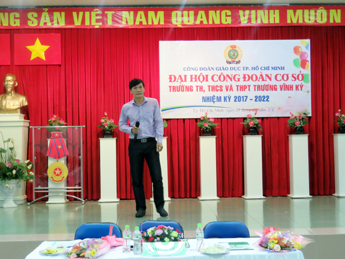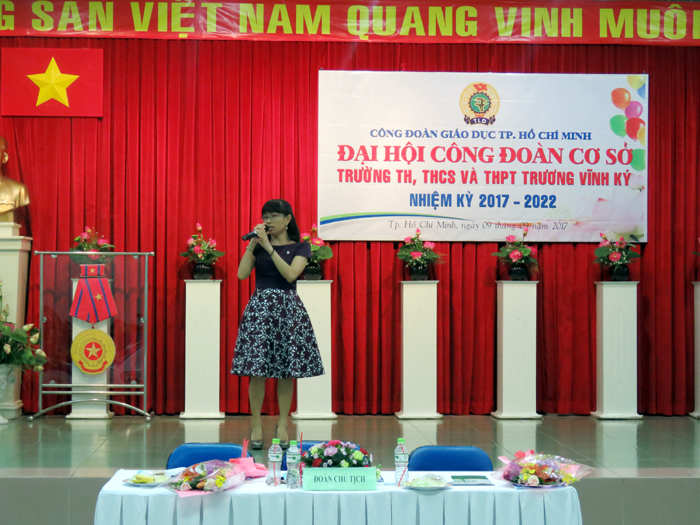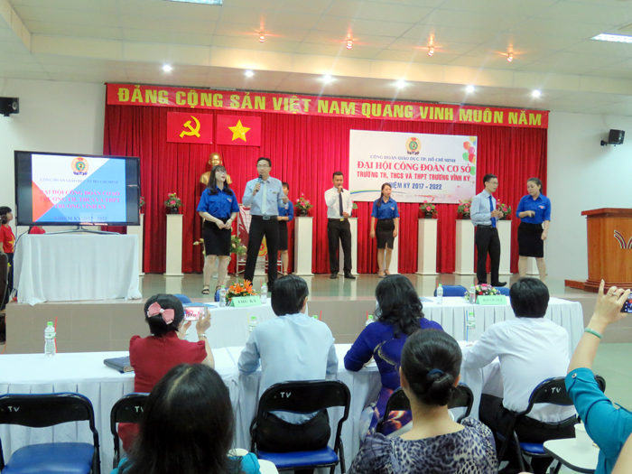 Căn cứ vào Kế hoạch năm học 2017-2018 của trường TH, THCS và THPT Trương Vĩnh Ký, thực hiện Kế hoạch số 78/KH-CĐGD ngày 21 tháng 4 năm 2017 của Công đoàn ngành giáo dục Thành phố Hồ Chí Minh về tổ chức Đại hội Công đoàn Giáo dục các cấp tiến tới Đại hội XI Công đoàn Giáo dục Thành phố Hồ Chí Minh, thực hiện phương châm của Đại hội: “Đổi mới, dân chủ, đoàn kết, trách nhiệm”, vào lúc 14g00, ngày 09 tháng 9 năm 2017 tại Trường TH, THCS và THPT Trương Vĩnh Ký đã long trọng tổ chức Đại hội Công đoàn Cơ sở nhiệm kỳ 2017 – 2022.