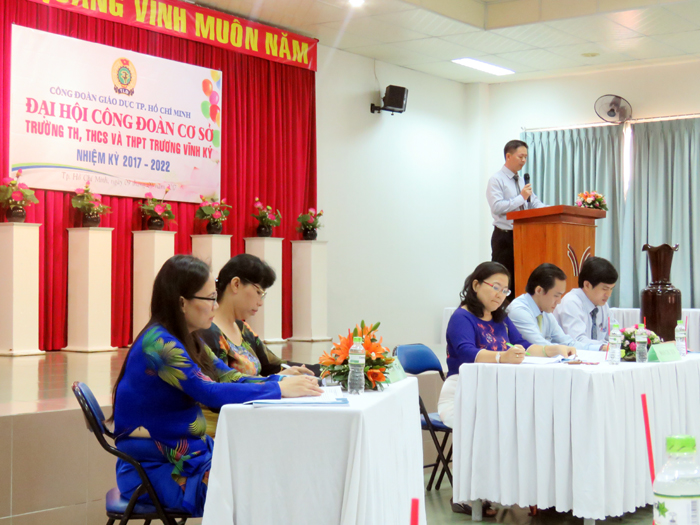Tham dự Đại hội có đồng chí Nguyễn Hữu Hùng - Chủ tịch Công đoàn ngành Giáo dục, Ban Lãnh đạo nhà trường và 158 công đoàn viên. Trong suốt 3 giờ làm việc, Đại hội đã thông qua bảng Báo cáo Tóm tắt hoạt động Công đoàn nhiệm kỳ 2012 – 2017 và nêu ra Phương hướng hoạt động Công đoàn Cơ sở trường Trương Vĩnh Ký nhiệm kỳ 2017 – 2022. Đại hội cũng đã tiếp thu ý kiến chỉ đạo của đồng chí Nguyễn Hữu Hùng và thầy Hiệu trưởng Phan Văn Thanh – Bí thư Chi bộ.