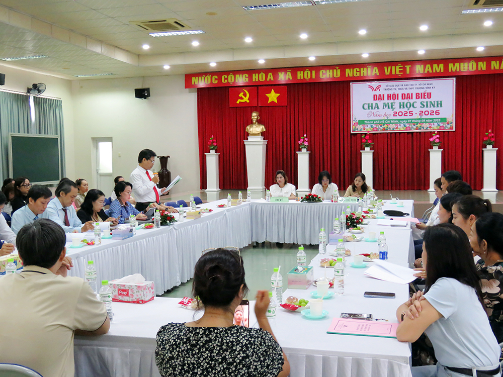 Thực hiện nhiệm vụ năm học 2025 - 2026 và kế hoạch công tác của nhà trường, nhằm tăng cường mối quan hệ gắn bó giữa gia đình và nhà trường trong việc chăm lo sự nghiệp giáo dục các em học sinh và báo cáo, đánh giá hoạt động của Ban Đại diện cha mẹ học sinh trong năm học vừa qua; thảo luận, thống nhất phương hướng, nhiệm vụ và các hoạt động phối hợp trong năm học mới đồng thời bầu ra Ban Đại diện Cha mẹ học sinh năm học 2025 - 2026 để cùng đồng hành với nhà trường, góp phần nâng cao chất lượng dạy và học, vào lúc 09 giờ 45 phút ngày Chủ nhật, 07 tháng 09 năm 2025, trường TH, THCS và THPT Trương Vĩnh Ký đã tổ chức Đại hội Đại biểu Cha mẹ học sinh tại số 21, Trịnh Đình Trọng, Phường Hoà Bình, Tp Hồ Chí Minh.