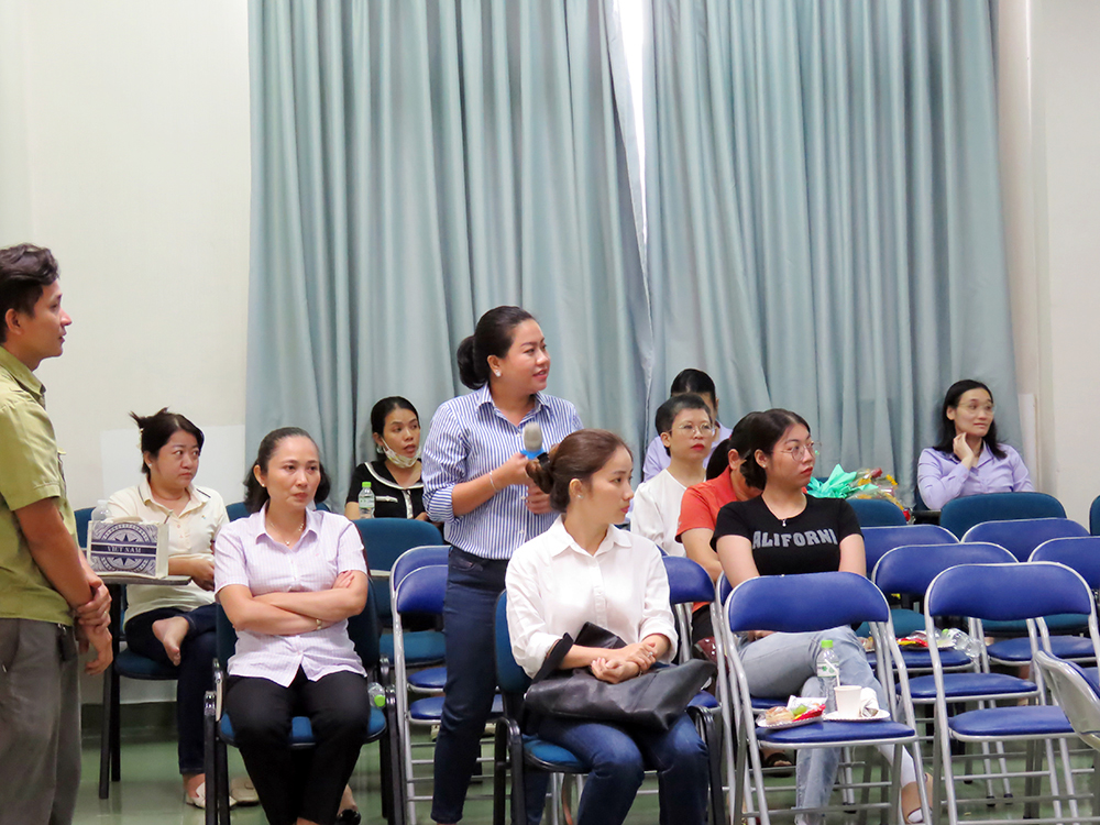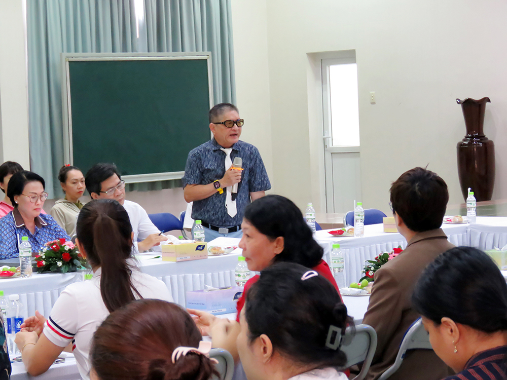 Bà Hồ Diễm Mai, Trưởng Ban đại diện CMHS phát biểu.