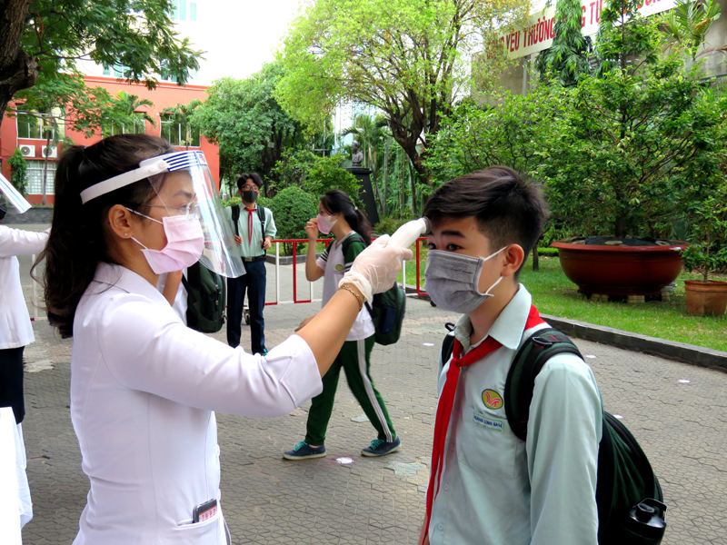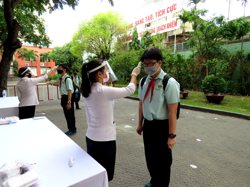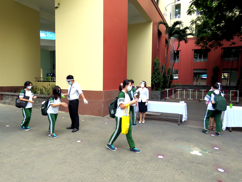 Ngày đầu tiên, các em học sinh tập trung đến trường cùng thầy cô thực hiện các biện pháp phòng chống dịch bệnh. Ngày 05-05-2020, học sinh bắt đầu học tập bình thường.
