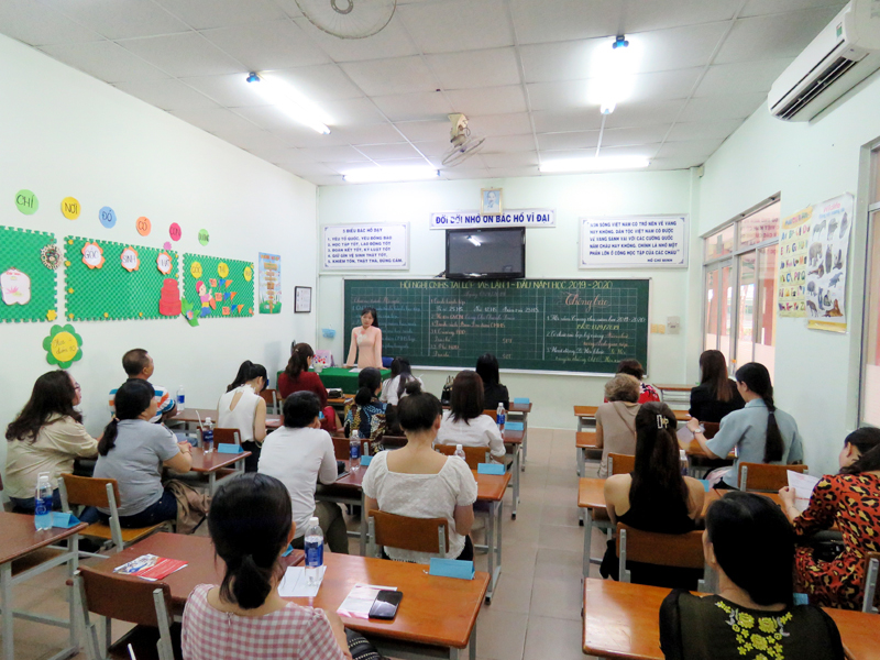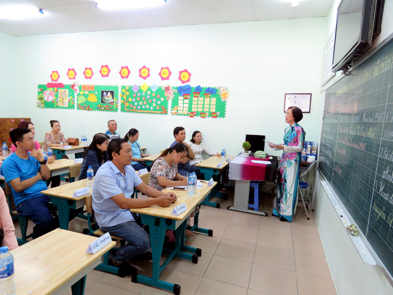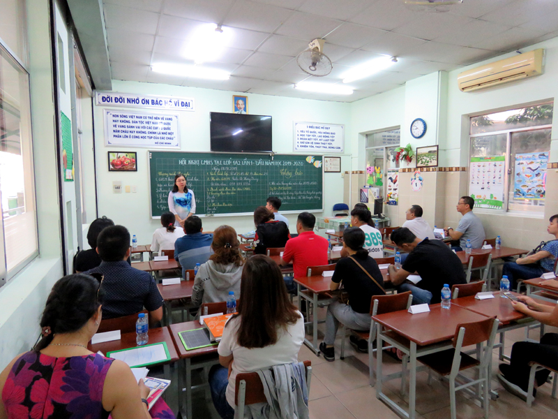 Trong buổi họp, BLĐ nhà trường tổng kết hoạt động năm học 2018 – 2019, thông tin đến quý CMHS lịch hoạt động của nhà trường cho năm học mới 2019-2020. Sau đó, các bậc CMHS đã về từng lớp họp với GVCN để nghe Báo cáo tình hình học tập và rèn luyện của các em học sinh để chuẩn bị cho năm học mới.