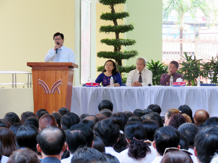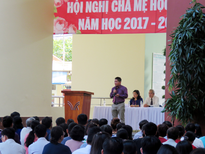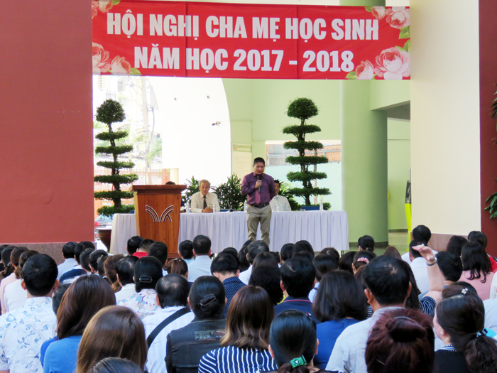 Sau lời phát biểu của thầy Trần Văn Hiếu, Chủ tịch Hội đồng Quản trị nhà trường là phần Báo cáo tóm tắt hoạt động năm học 2016 – 2017, nêu Phương hướng, nhiệm vụ hoạt động năm học 2017 – 2018 của thầy Hiệu trưởng Phan Văn Thanh.