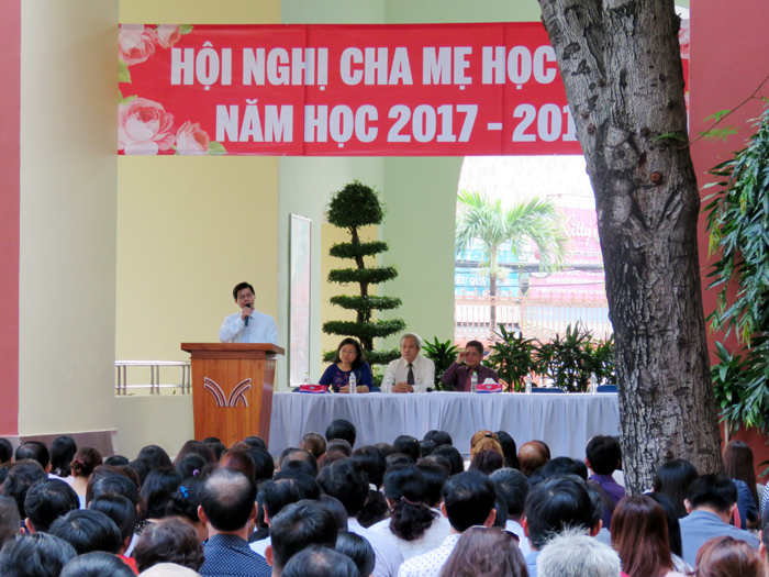 Để việc phối hợp giáo dục học sinh giữa nhà trường và gia đình được nhịp nhàng, hiệu quả, hàng năm, vào đầu niên học, nhà trường có tổ chức Hội nghị Cha mẹ học sinh nhằm thông tin đến quý phụ huynh tình hình học tập của con em, nêu ra phương hướng, nhiệm vụ năm học mới đồng thời lắng nghe những ý kiến đóng góp, chia sẻ của quý cha mẹ học sinh trong việc giáo dục các em nên người. Hôm nay, vào lúc 8g00 ngày Chủ nhật 9/8/5015, trường TH, THCS và THPT Trương Vĩnh Ký tổ chức Hội nghị CMHS khối 9 và 12 tại số 21, đường Trịnh Đình Trọng, Phường 5, Quận 11, Tp HCM.