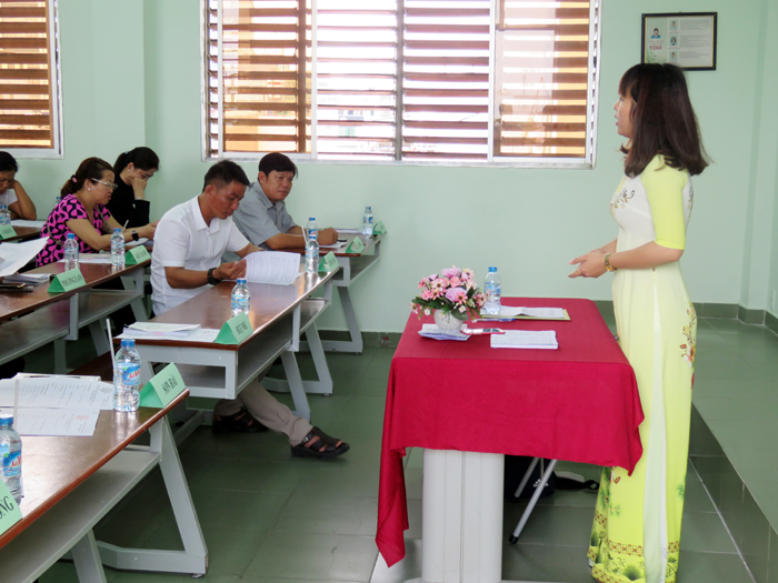 Thầy Phan Văn Thanh - Hiệu trưởng nhà trường báo cáo kết quả năm học 2016-2017