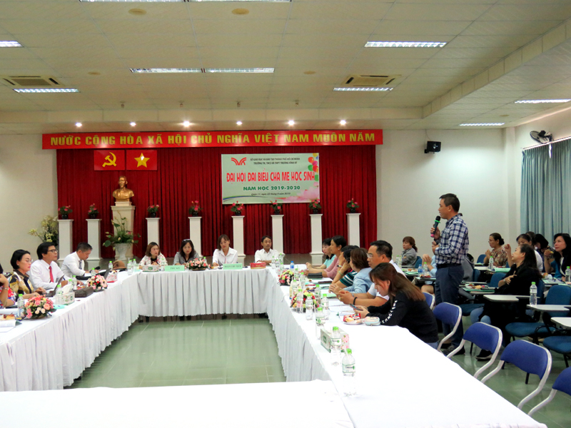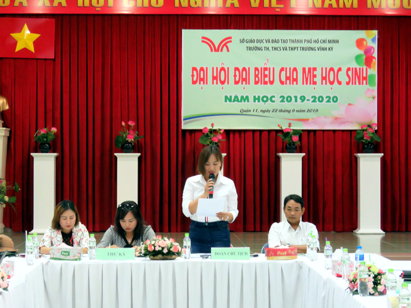 Đến 9g30 cùng ngày, Đại hội Đại biểu CMHS trường TH, THCS và THPT Trương Vĩnh Ký năm học 2019 – 2020 cũng đã được tổ chức tại Hội trường lầu 6. Mở đầu Hội nghị, thầy Hiệu trưởng đã Báo cáo tóm tắt kết quả năm học 2018 - 2019 và nêu ra Phương hướng hoạt động của năm học mới 2019 – 2020. Tiếp theo là phần phát biểu chia sẻ của thầy Chủ tịch Hội đồng Quản trị trường Trương Vĩnh Ký nhằm bầu ra Ban Đại diện CMHS trường với tinh thần trách nhiệm, nhiệt tình; xây dựng được chương trình hành động của CMHS, tạo sự đồng thuận và nâng cao nhận thức của các lực lượng trong và ngoài nhà trường về hoạt động của BĐD CMHS.