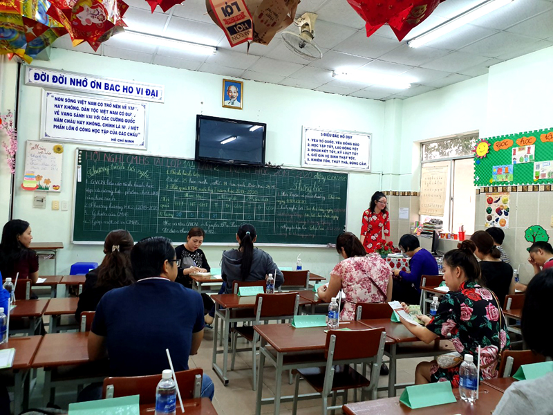 Các thầy cô tổng kết hoạt động học kỳ I của lớp và thông báo đến CMHS phương hướng học kỳ II.