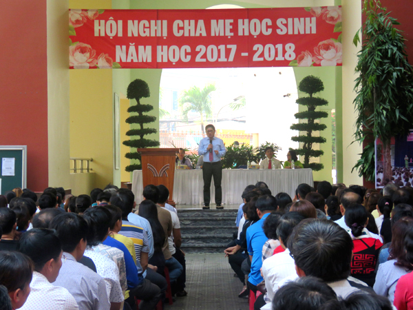 Trong buổi Hội nghị, thầy Trần Văn Hiếu – Chủ tịch HĐQT nhà trường đã chia sẽ những thông tin về việc phối hợp giữa nhà trường và PHHS trong công tác quản lý học tập cũng như sức khỏe của các em. Tiếp đó, thầy Phan Văn Thanh – Hiệu trưởng nhà trường cũng thông tin đến quý CMHS kết quả học tập, rèn luyện của các em trong năm 2017 – 2018.