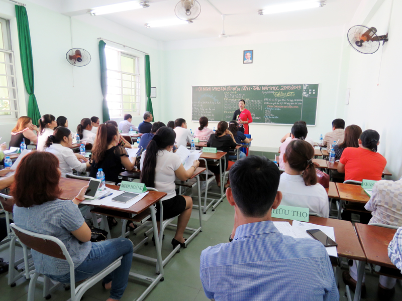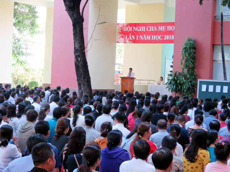Trong buổi họp, BLĐ nhà trường tổng kết hoạt động năm học 2017 – 2018, thông tin đến quý CMHS lịch sinh hoạt nhà trường đầu năm học và kế hoạch học tập cho năm học mới 2018-2019.