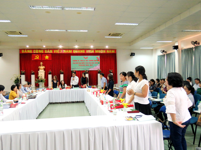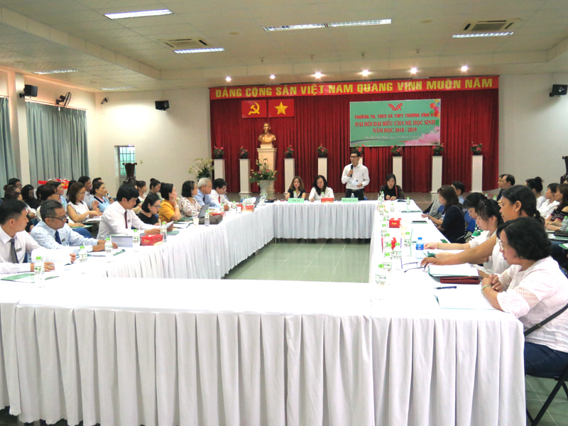 Nhằm kiện toàn cơ cấu tổ chức cho năm học mới và tổng kết đánh giá rút kinh nghiệm các hoạt động phối kết hợp giữa Ban Đại diện Cha mẹ học sinh năm học 2017 - 2018 với tập thể sư phạm trường TH, THCS và THPT Trương Vĩnh Ký, đồng thời bầu cử Ban Đại diện CMHS năm học 2018-2019, vào lúc 9g30 ngày chủ nhật 09/9/2018, Đại hội Đại biểu Cha mẹ học sinh năm học 2018 – 2019 đã tiến hành tại Hội trường lầu 6, cơ sở Trịnh Đình Trọng, Phường 5, Quận 11.