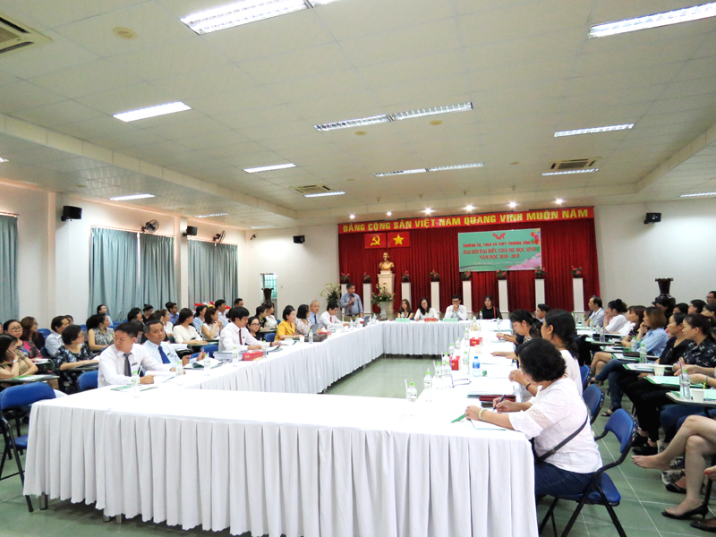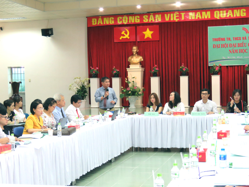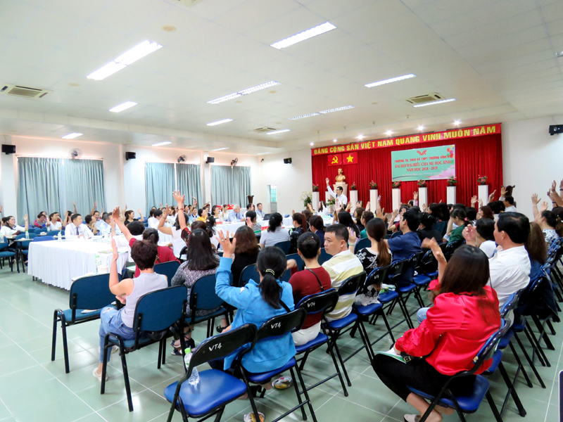 Sau phần báo cáo tóm tắt Tổng kết năm học 2017 - 2018 và yêu cầu trọng tâm nhiệm vụ năm học 2018 - 2019 của thầy Hiệu trưởng, đại diện CMHS đã báo cáo Tổng kết công tác của BĐD CMHS năm học 2017 - 2018 và đưa ra phương hướng hoạt động của BĐD CMHS năm học 2018 – 2019. Thầy Trần Văn Hiếu – Chủ tịch HĐQT nhà trường cũng đã trả lời những ý kiến thảo luận, đóng góp của CMHS về các vấn đề liên quan đến sự hỗ trợ của CMHS trong việc động viên, khen thưởnghọc sinh, nâng cao hoạt động của CMHS, các công trình của CMHS cho nhà trường ….