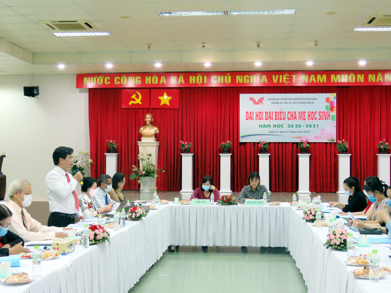 Căn cứ theo Điều lệ BĐD CMHS - Ban hành kèm theo Thông tư số 55/2011/TT-BGDĐT ngày 22 /11 /2011 của Bộ trưởng Bộ Giáo dục và Đào tạo; căn cứ vào danh sách đề cứ - ứng cử BĐD CMHS lớp năm học 2020-2021 được CMHS lớp thông qua ngày 19/9/2020 bằng hình thức gửi phiếu bầu; căn cứ vào danh sách đề cứ - ứng cử BĐD CMHS trường năm học 2020-2021 được BĐD CMHS lớp thông qua ngày 23/9/2020 bằng hình thức gửi phiếu bầu và cũng nhằm để tổng kết, đánh giá các hoạt động của Ban Đại diện Cha mẹ học sinh nhà trường năm học 2019-2020 đồng thời rút kinh nghiệm những mặt đã làm được, những mặt tồn tại cần khắc phục và đưa ra phương hướng nhiệm vụ trong năm học mới, giúp cho công tác phối hợp giữa BĐD CMHS và nhà trường ngày càng đạt hiệu quả cao, xây dựng trường học thân thiện, học sinh tích cực đồng thời bầu ra BĐD CMHS trường năm học 2020 – 2021, hôm nay, ngày chủ nhật, 27 – 09 – 2020, tại Hội trường Lầu 6, cơ sở số 21, Trịnh Đình Trọng, Phường 5, quận 11, Hội nghị Đại biểu Cha mẹ học sinh năm học 2020 – 2021 trường TH, THCS và THPT Trương Vĩnh Ký đã được tổ chức.