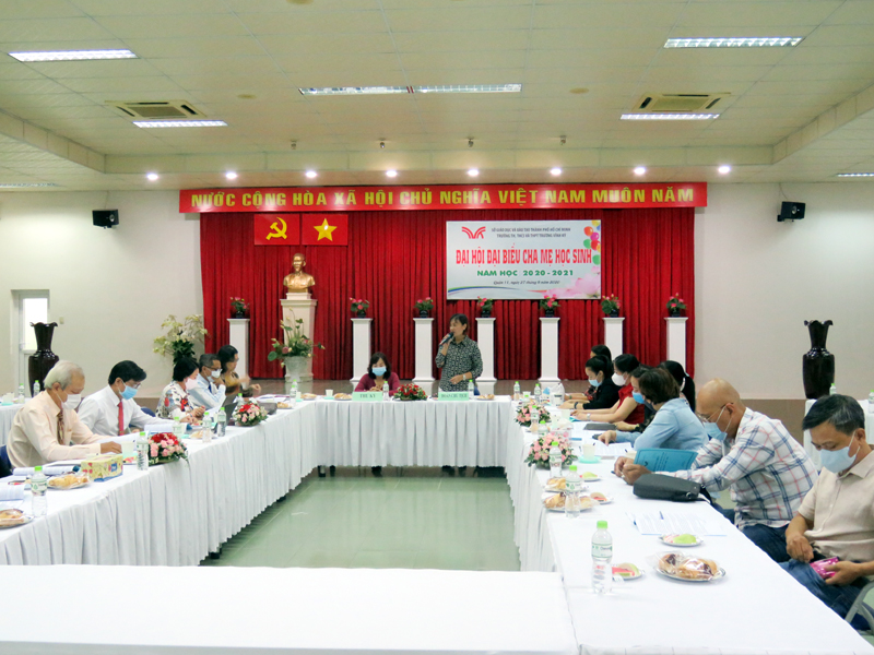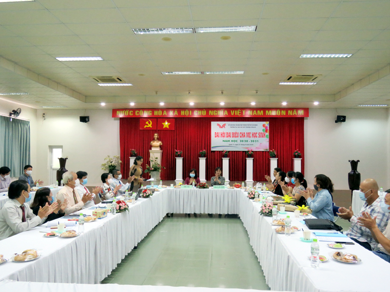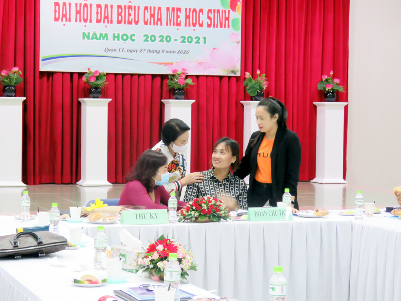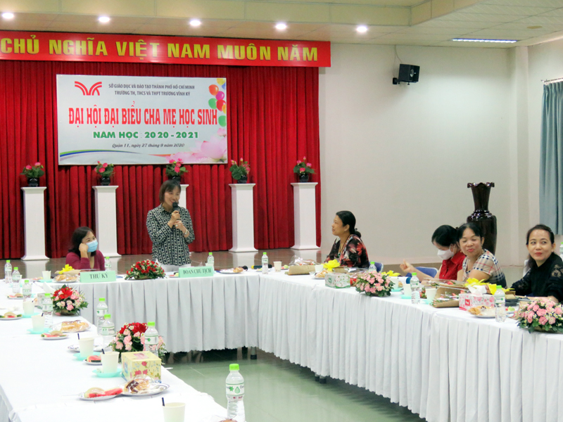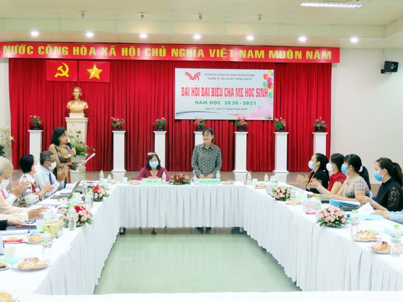 Sau hơn 1 giờ làm việc, Ban Đại diện CMHS năm học 2020 - 2021 đã ra mắt Hội nghị và nhất trí đề cử bà Bà Hồ Diễm Mai - Trưởng Ban Đại diện CMHS lớp 10A10 tiếp tục giữ vị trí Trưởng Ban Đại diện CMHS trường TH, THCS và THPT Trương Vĩnh Ký năm học 2020-2021.