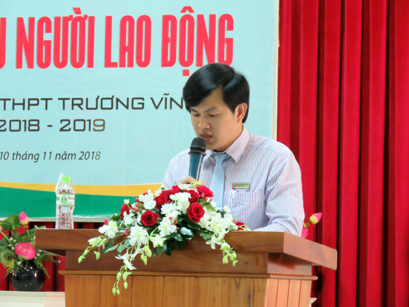 Thầy Vũ Văn Tĩnh – Chủ tịch Công đoàn cơ sở nhà trường phát biều trước Hội nghị.