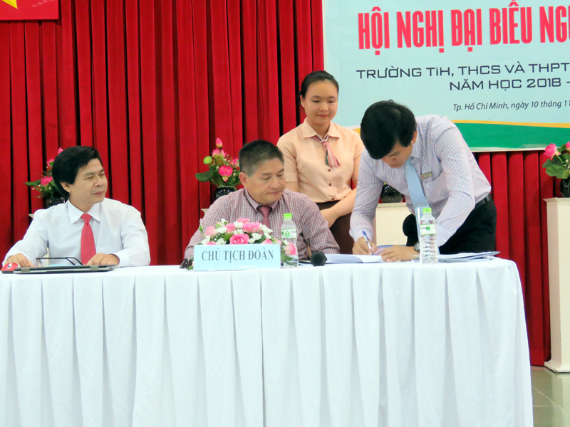 Hội nghị đã lắng nghe và tiếp thu ý kiến chỉ đạo của bà Nguyễn Thị Gái –Ủy viên Ban Thường vụ Đảng ủy Sở Giáo dục và Đào tạo Thành phố Hồ Chí Minh; Chủ tịch Công đoàn Giáo dục Thành phố Hồ Chí Minh cũng như ý kiến chia sẽ của thầy Chủ tịch Hội đồng quản trị Trần Văn Hiếu.