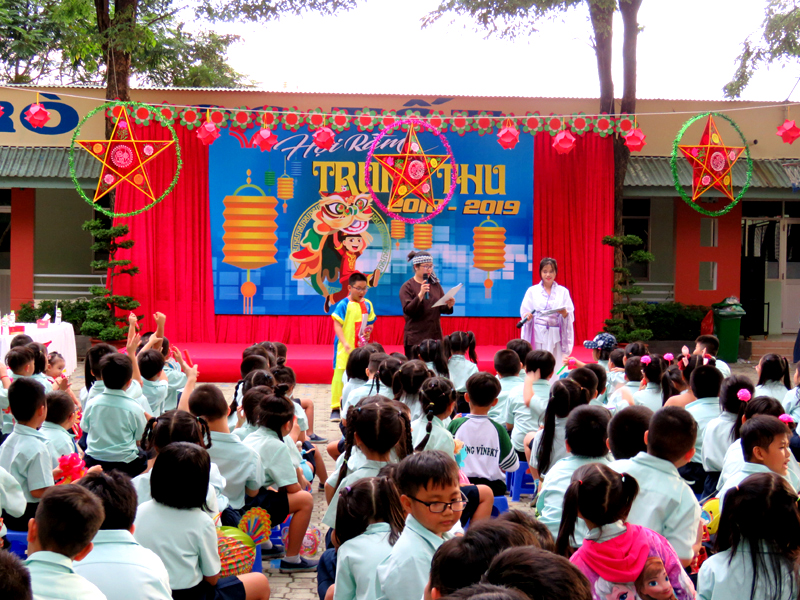 Vào lúc 16g00, thứ sáu ngày 21/9/2018.(12/8 AL) nhà trường đã tổ chức Hội rằm Trung thu cho 400 học sinh khối Tiều học.