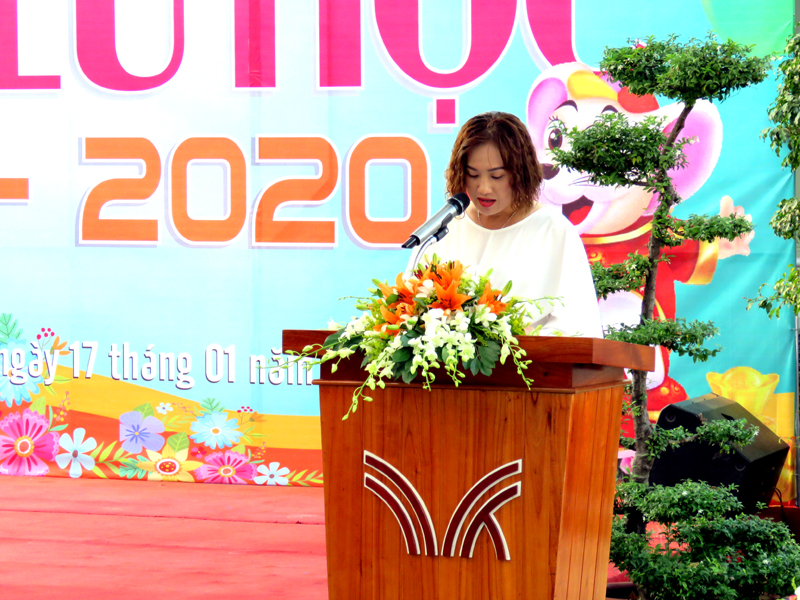 Bà Hồ Diễm Mai - Trưởng Ban đại diện CMHS chúc tết tập thể Hội đồng sư phạm nhà trường