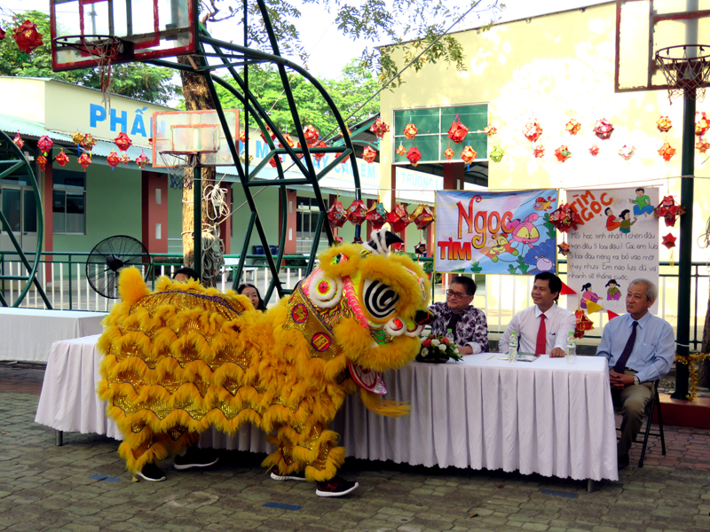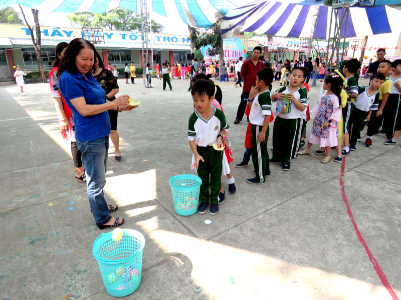 Tham dự ngày hội với sự có mặt của Ban Lãnh Đạo nhà trường ; Ban Đại diện CMHS các lớp cùng 460 HS khối Tiểu học.