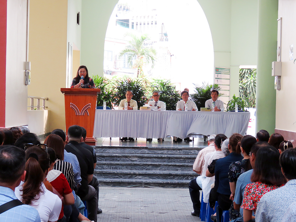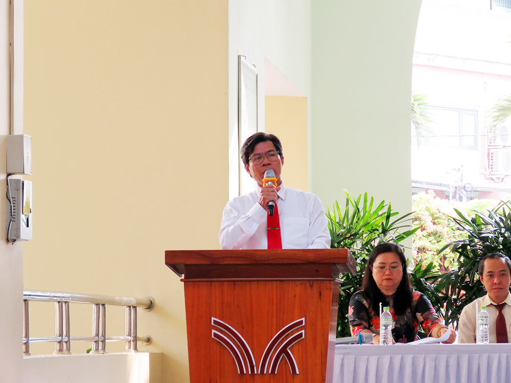 Mở đầu buổi họp, thầy Hiệu trưởng Phan Văn Thanh đã báo cáo tóm tắt các hoạt động của nhà trường và đưa ra phương hướng hoạt động trong giai đoạn này.