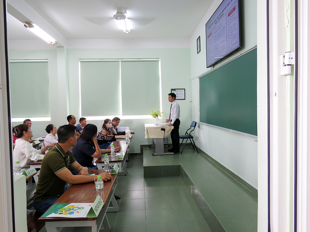 Thầy Phan Văn Thanh - Hiệu trưởng báo cáo tóm tắt các hoạt động của nhà trường