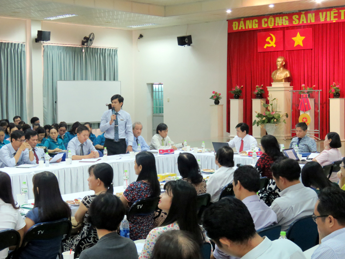 Phần 2 của buổi họp là nhận định của các thầy cô tổ trưởng chuyên môn về tình hình học tập của học sinh các khối lớp; Công tác quản lý, tổ chức các hoạt động trong nhà trường của các bộ phận…
