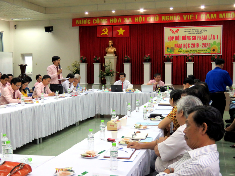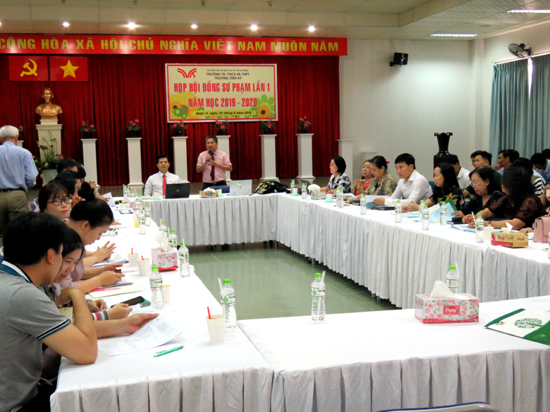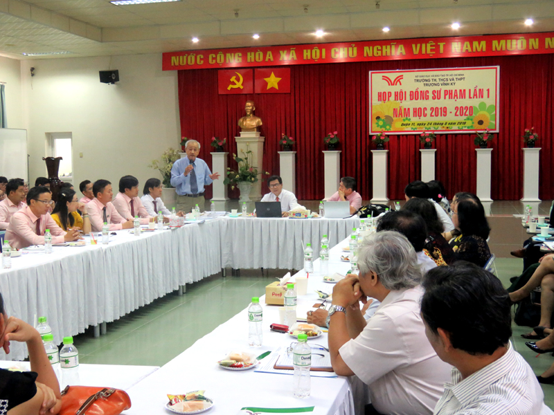 Nhằm chuẩn bị tốt nhất các hoạt động cho năm học mới 2019 – 2020, lúc 13g30 ngày thứ bảy, 24/08/2019 tại Hội trường – cơ sở Trịnh Đình Trọng, trường TH, THCS và THPT Trương Vĩnh Ký đã tổ chức phiên họp Hội đồng sư phạm lần 1, đầu năm học 2019 – 2020.